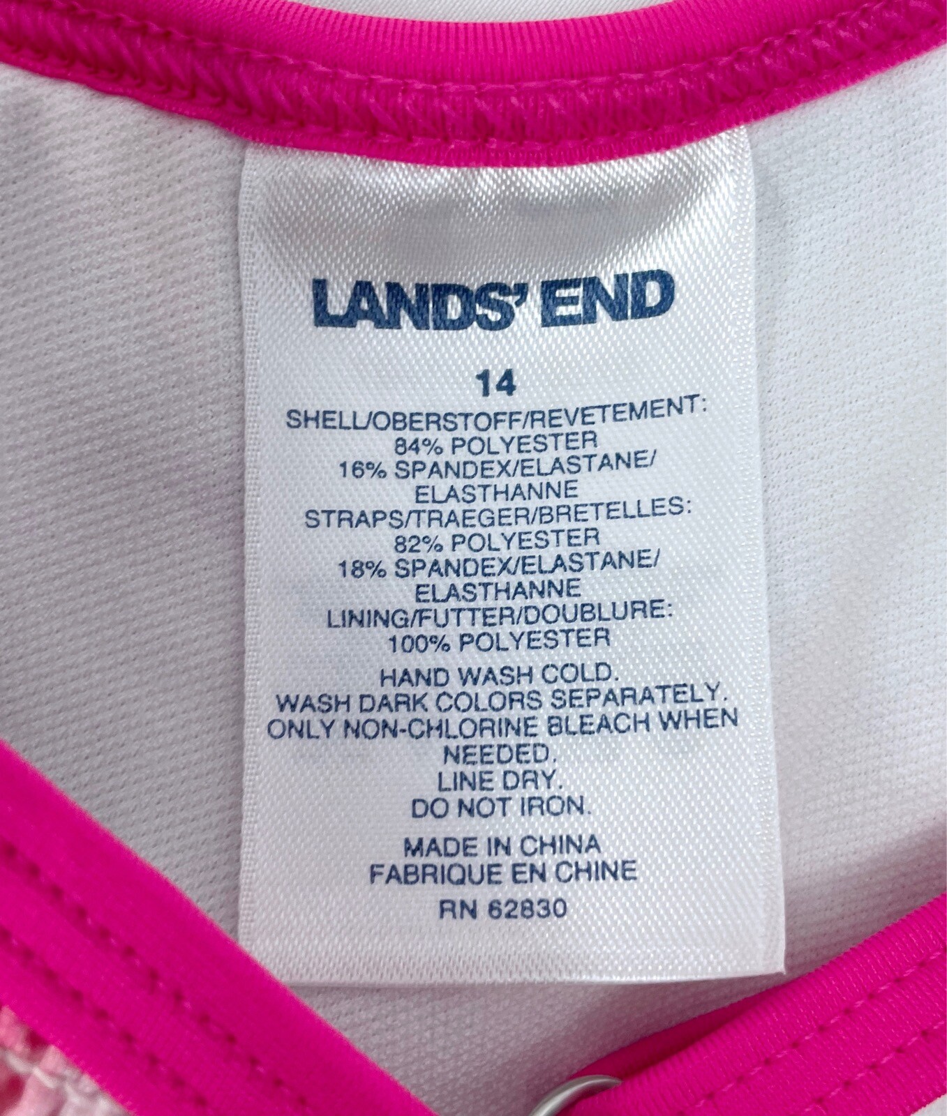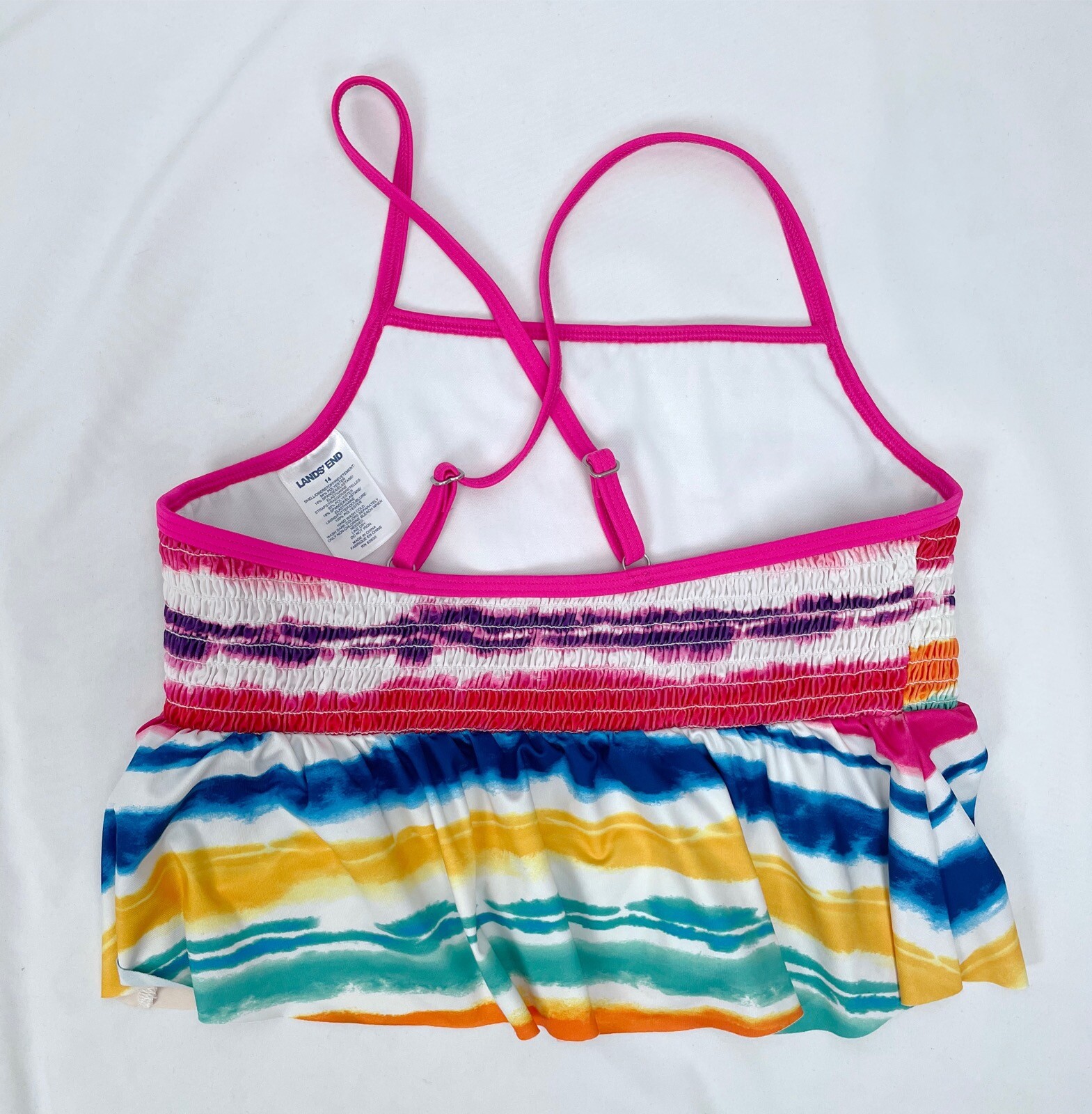 Lands End Girl 14 Pink Rainbow Striped Smocked Swim Top Racerback Tankini