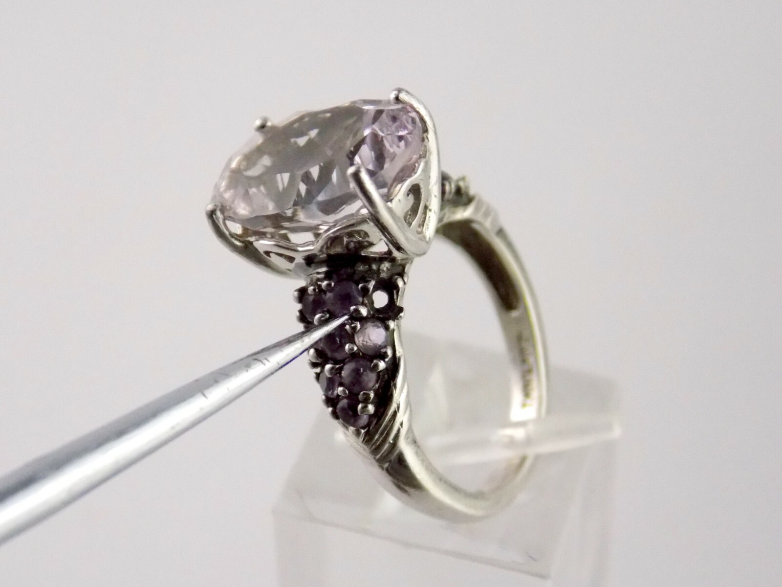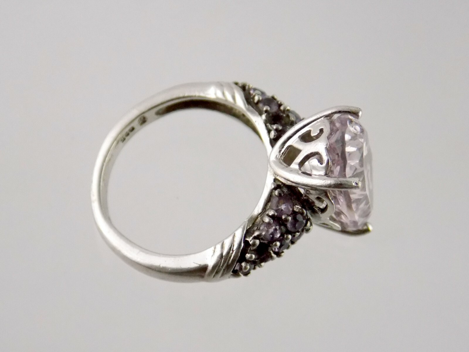 как выглядит Sterling Silver Pale Amethyst with Accents Statement Ring 925 Size 6 Weighs 4.8g фото