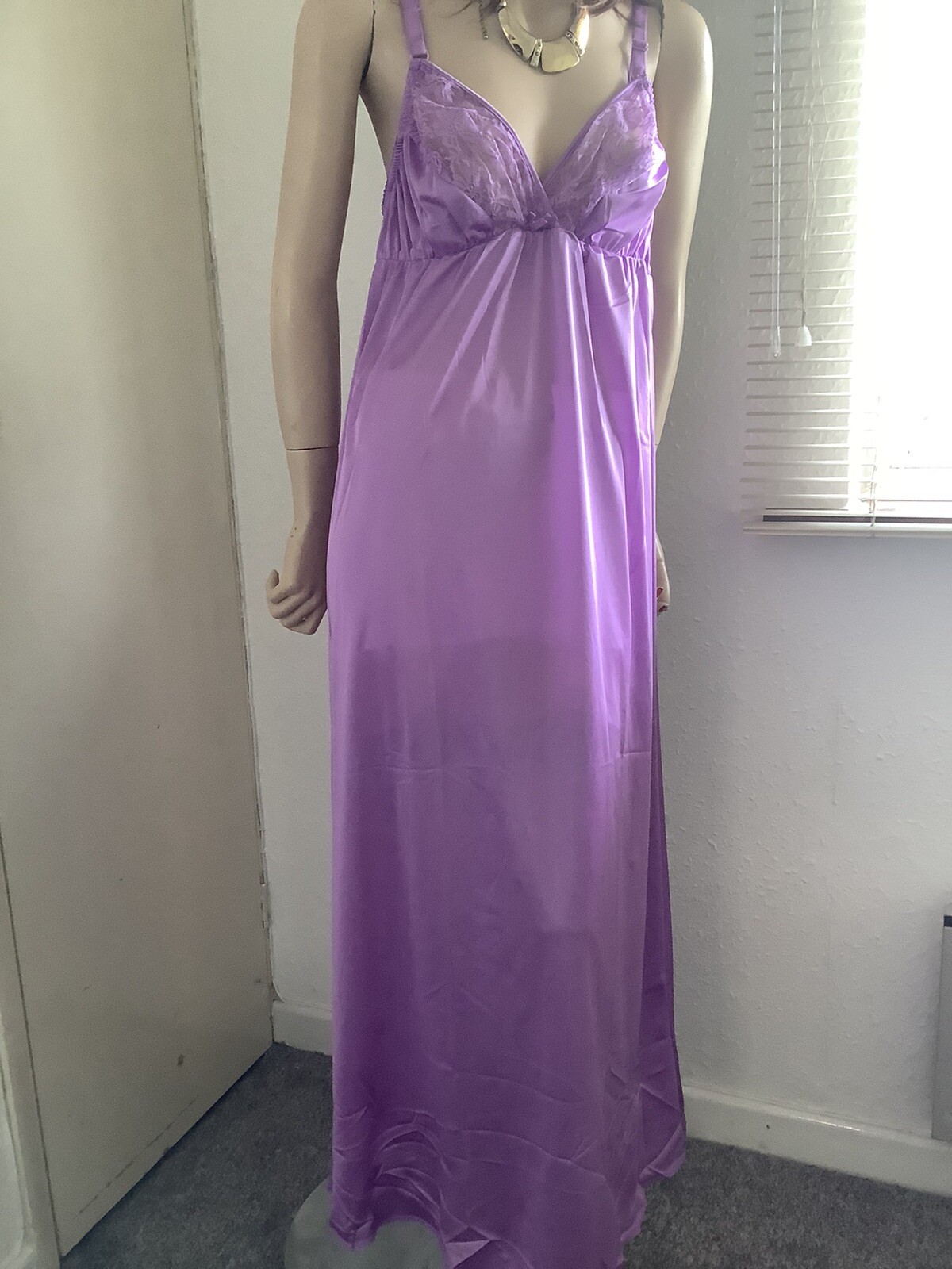 как выглядит Lilac Silky Soft Lacy Long Formal Length Bra Slip or Nightgown L-XXL BNWT фото