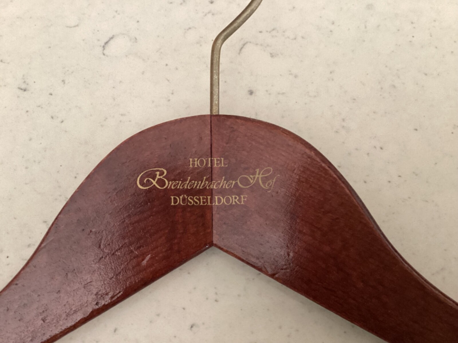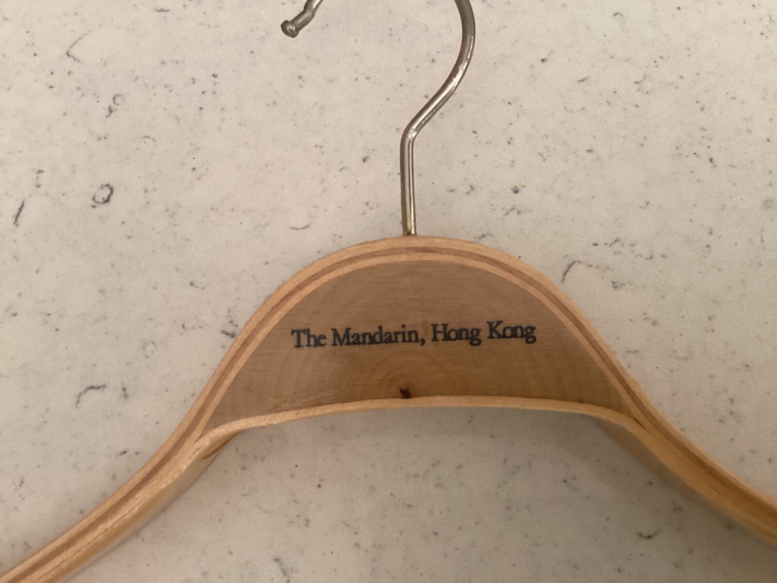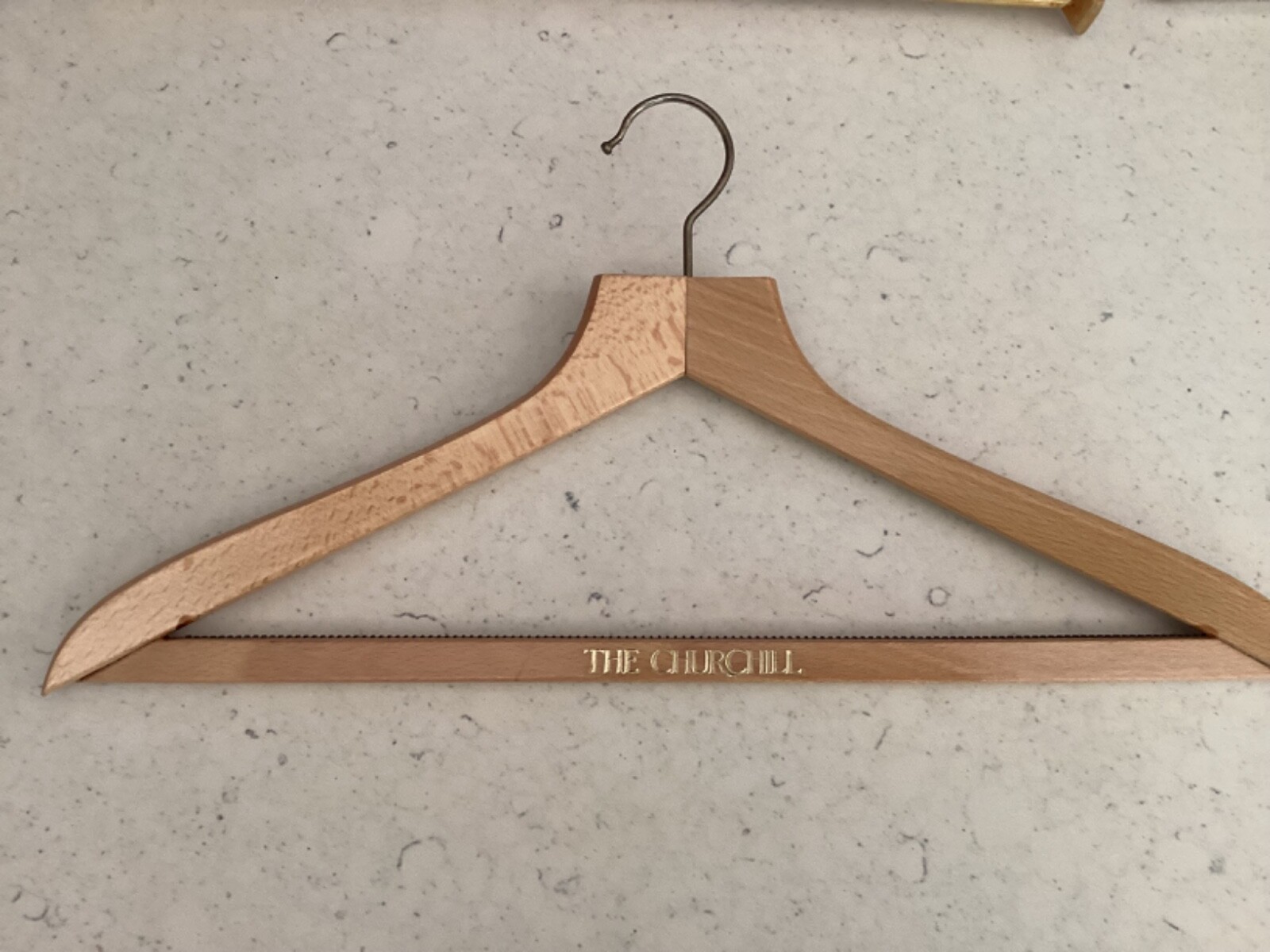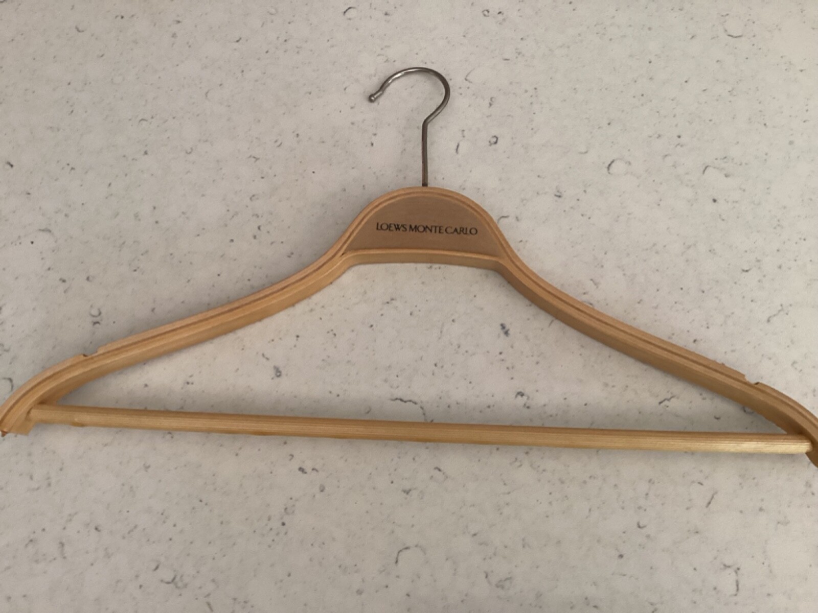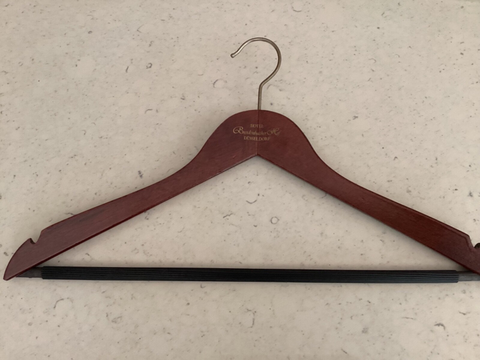 Six wooden mid-century international five star hotel coat hangers