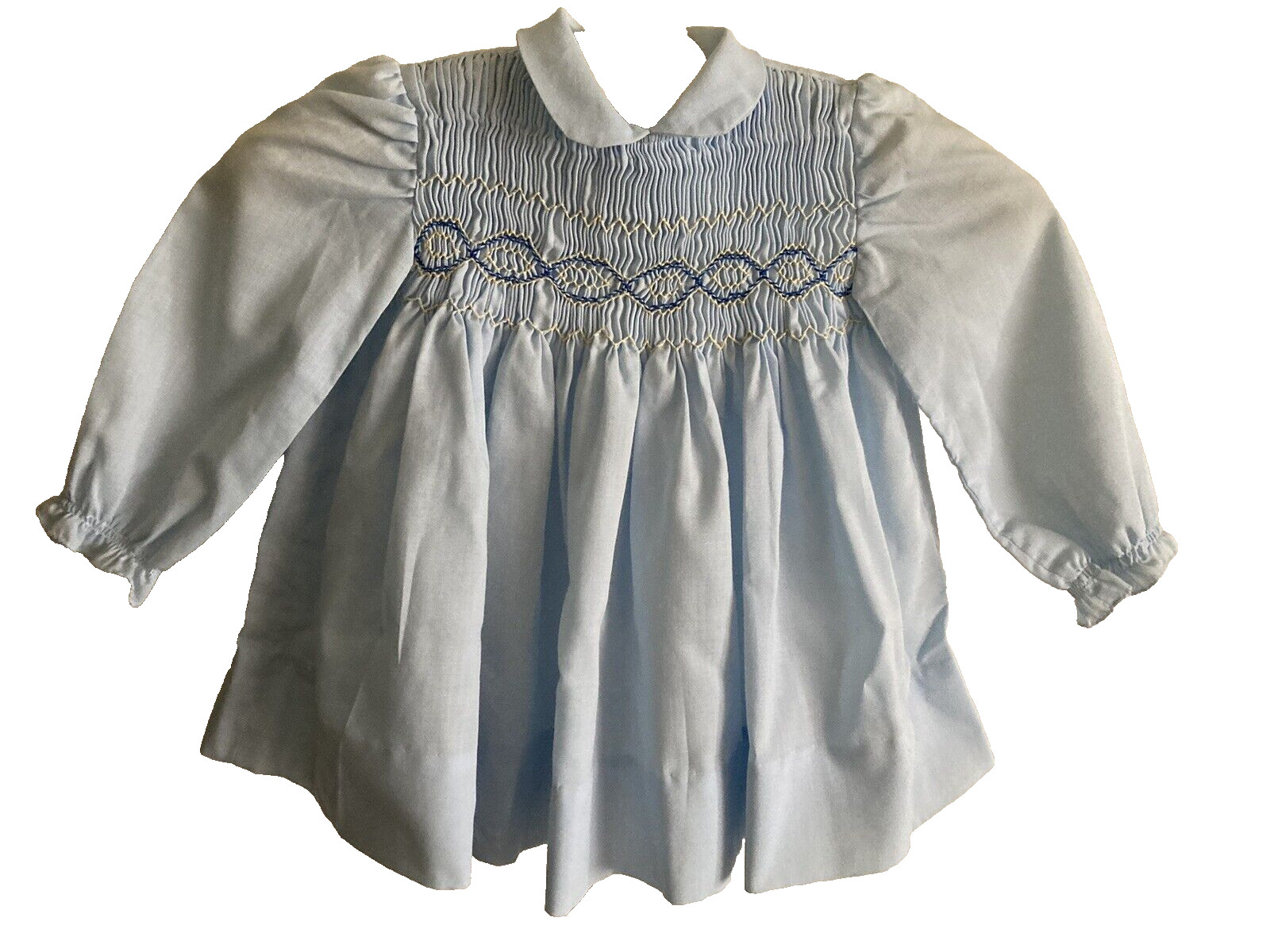 Vtg 1950s Cotton Smocked Toddler Dress Mrs Feld Made In Italy 12 mo