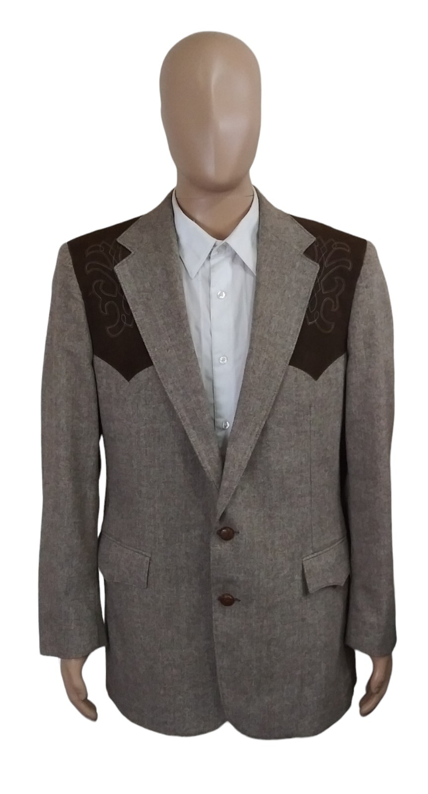 как выглядит Vintage Pagano West USA Leather Button Flecked Rockabilly Western Blazer 44L фото