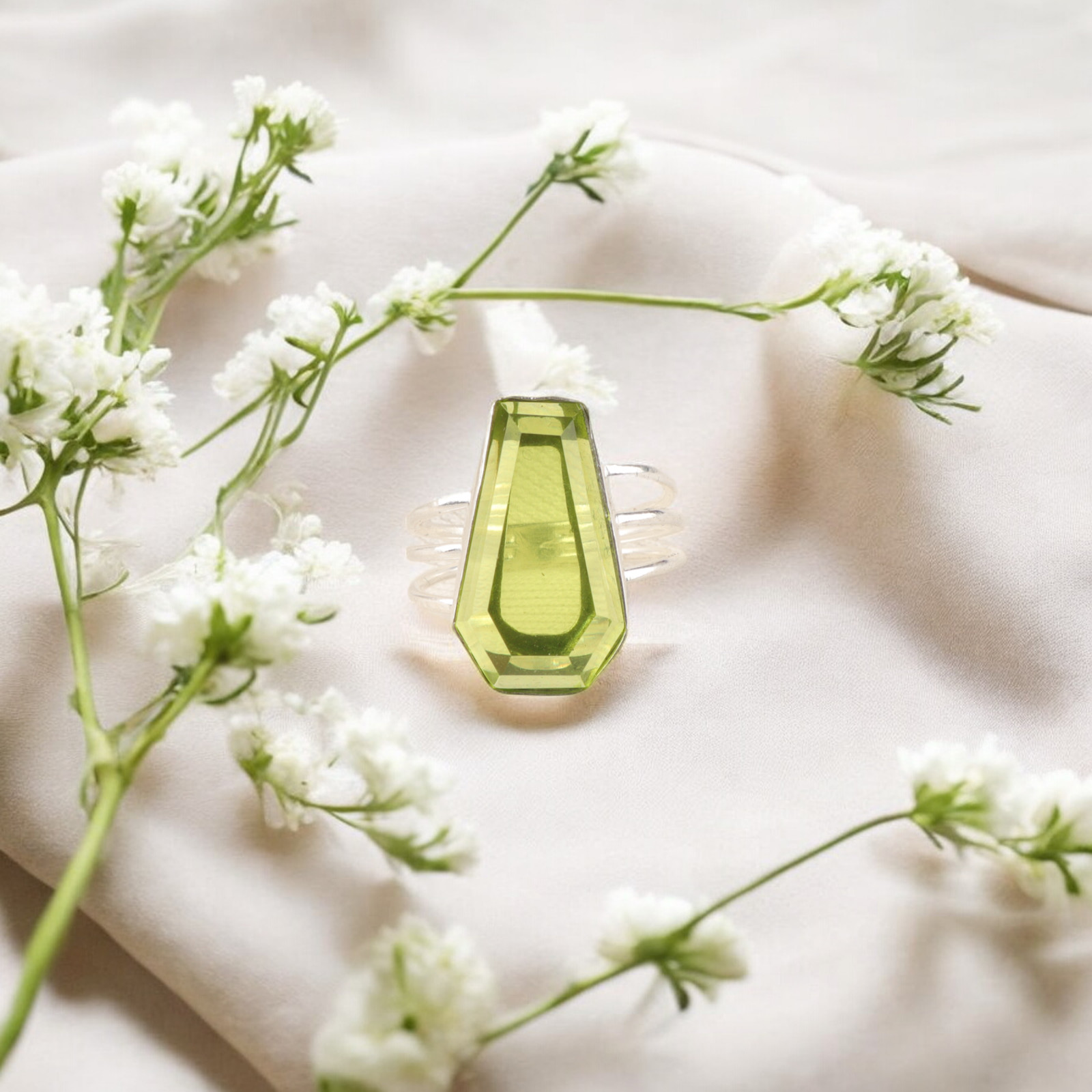 как выглядит 100 Genuine Peridot Gemstone 925 Sterling Silver Statement Jewelry Ring For Her фото