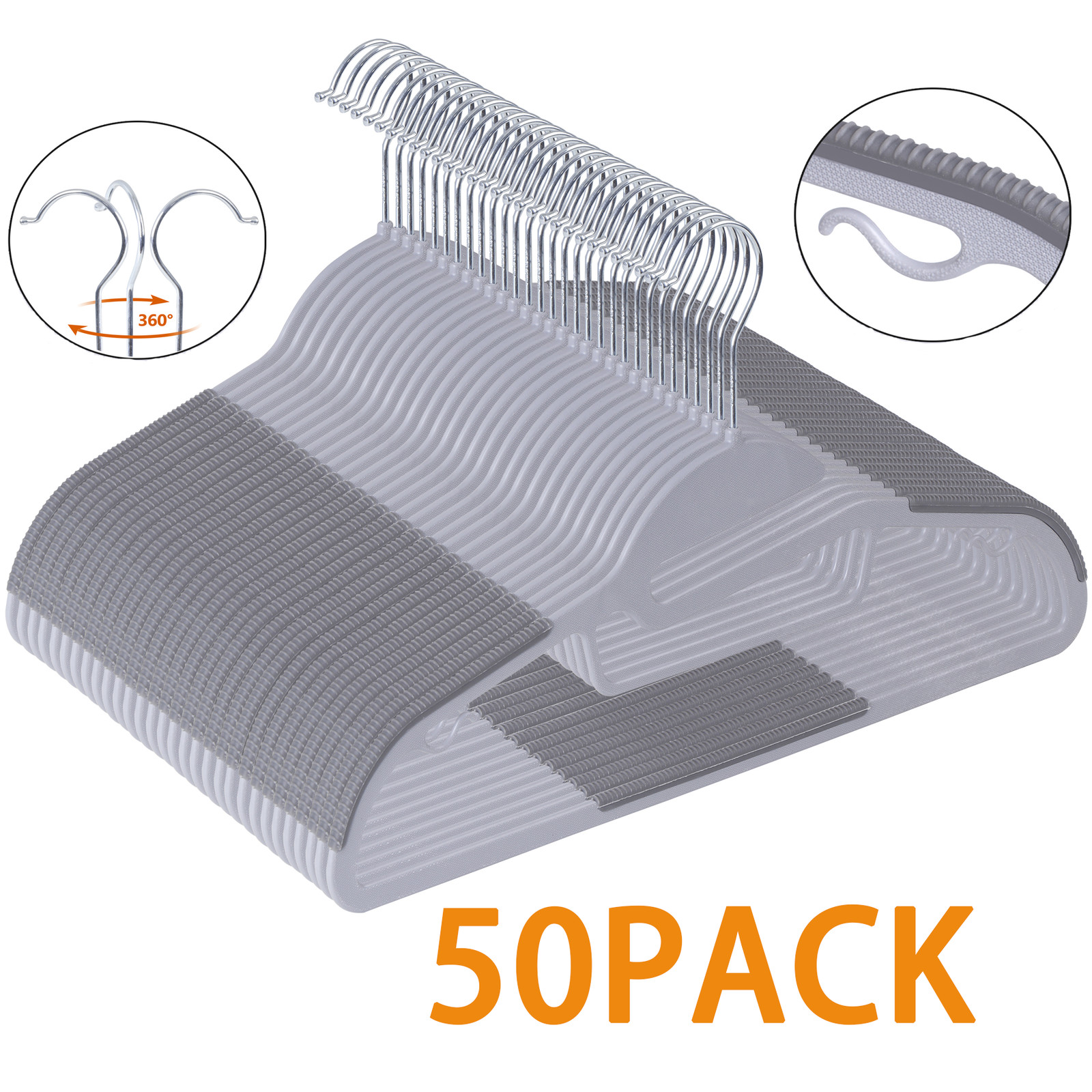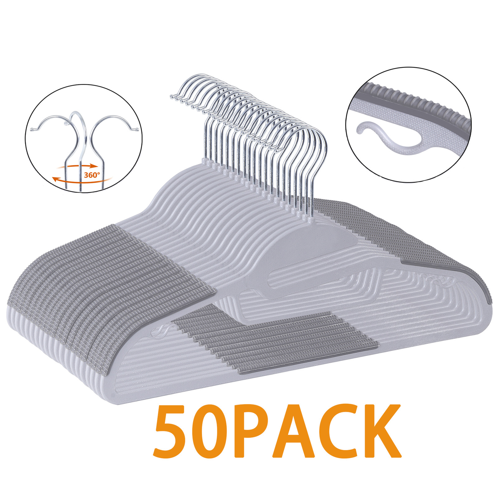 50 Pack Slim Plastic Hangers Non Slip for Clothes Heavy Duty 360 Swivel Hook