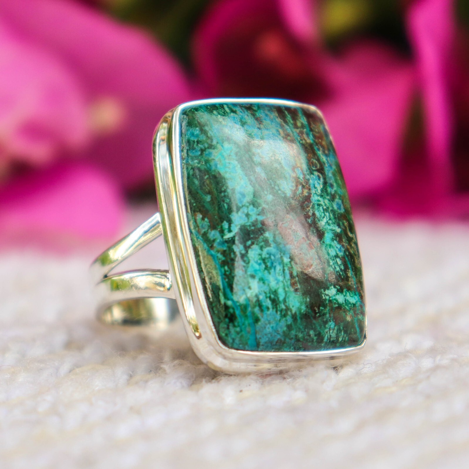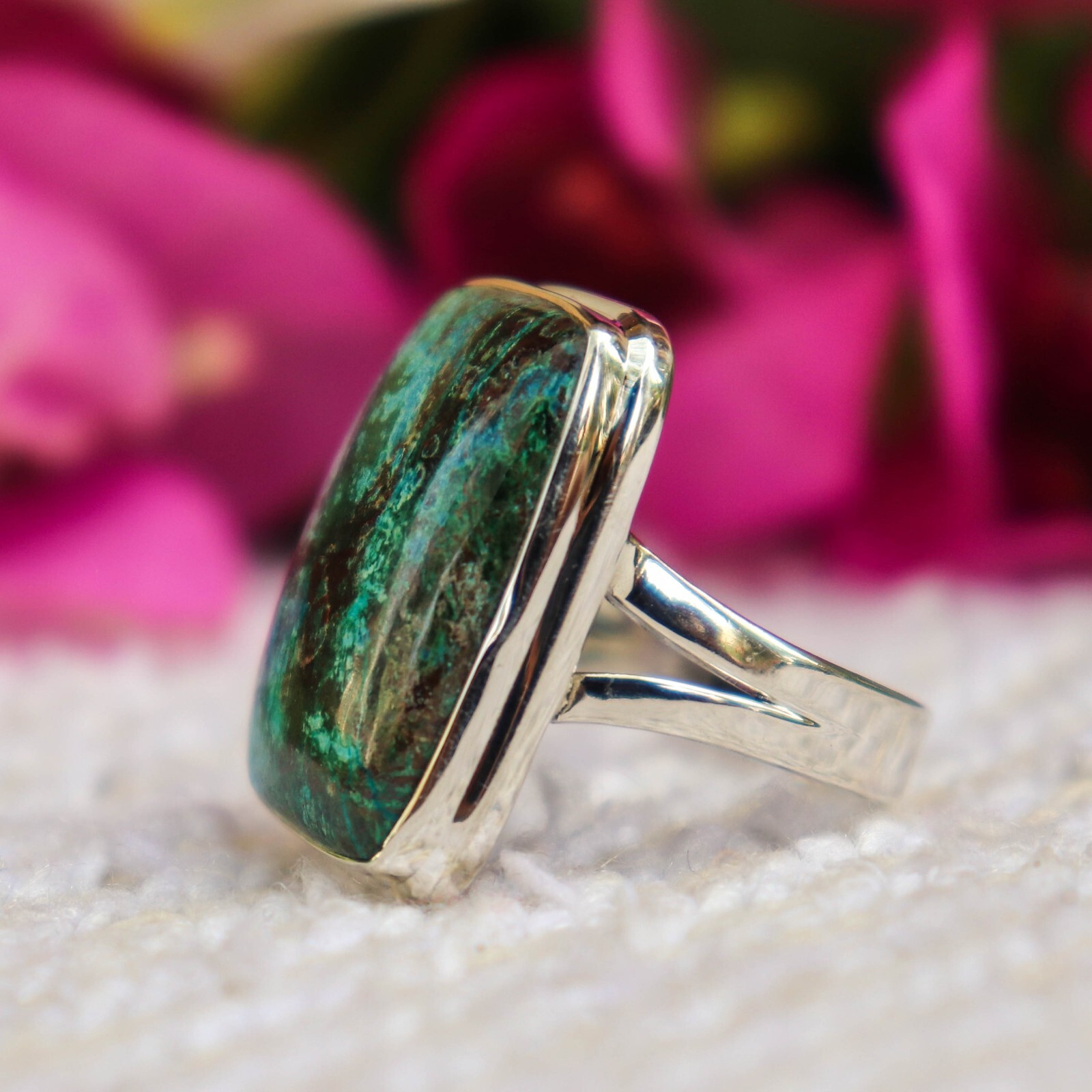 AZURITE MALACHITE NATURAL GEMSTONE 925 STERLING SILVER HANDMADE JEWELRY RING