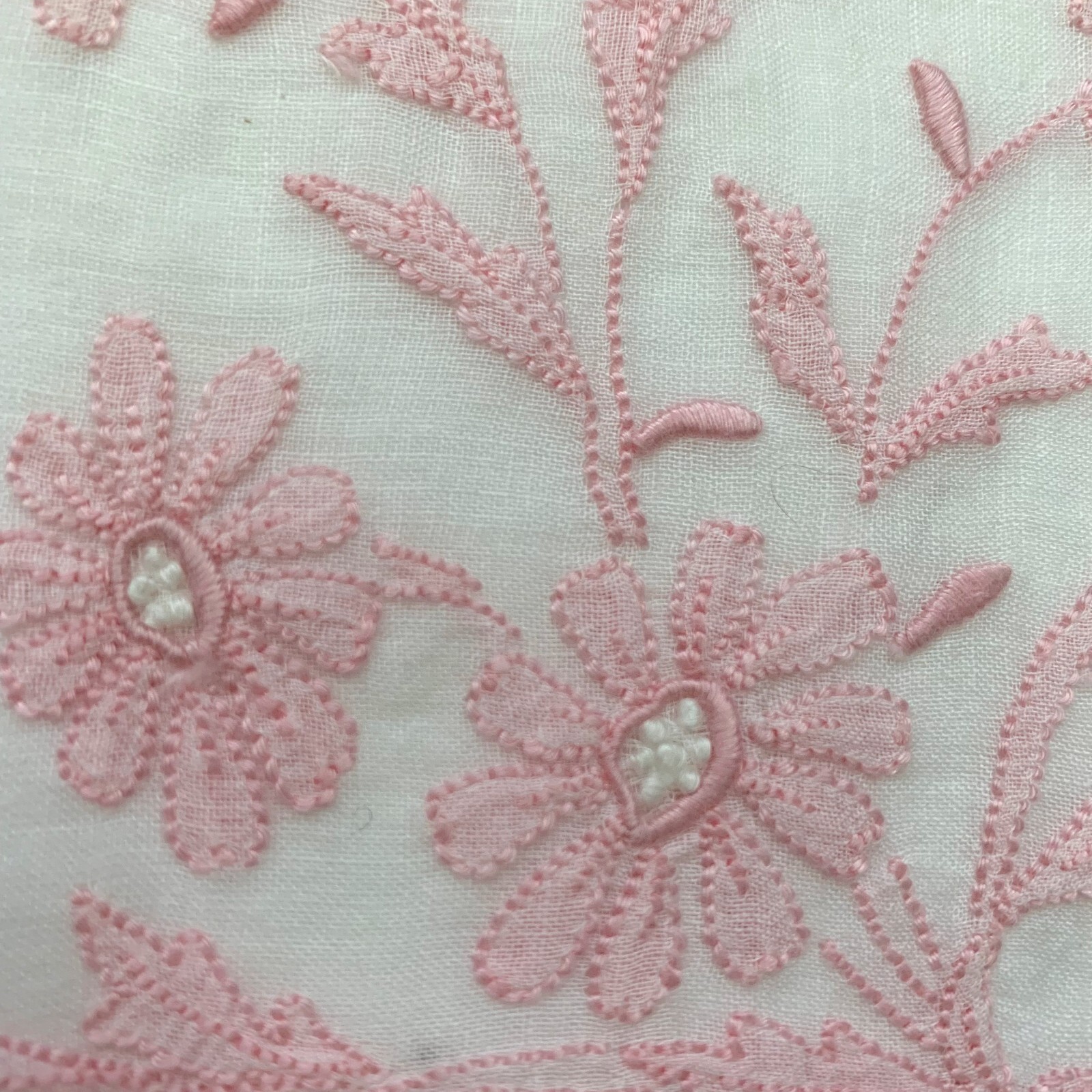 Embroidered Pink Daisy Bridesmaid Handkerchief Cottage Core Granny Vintage