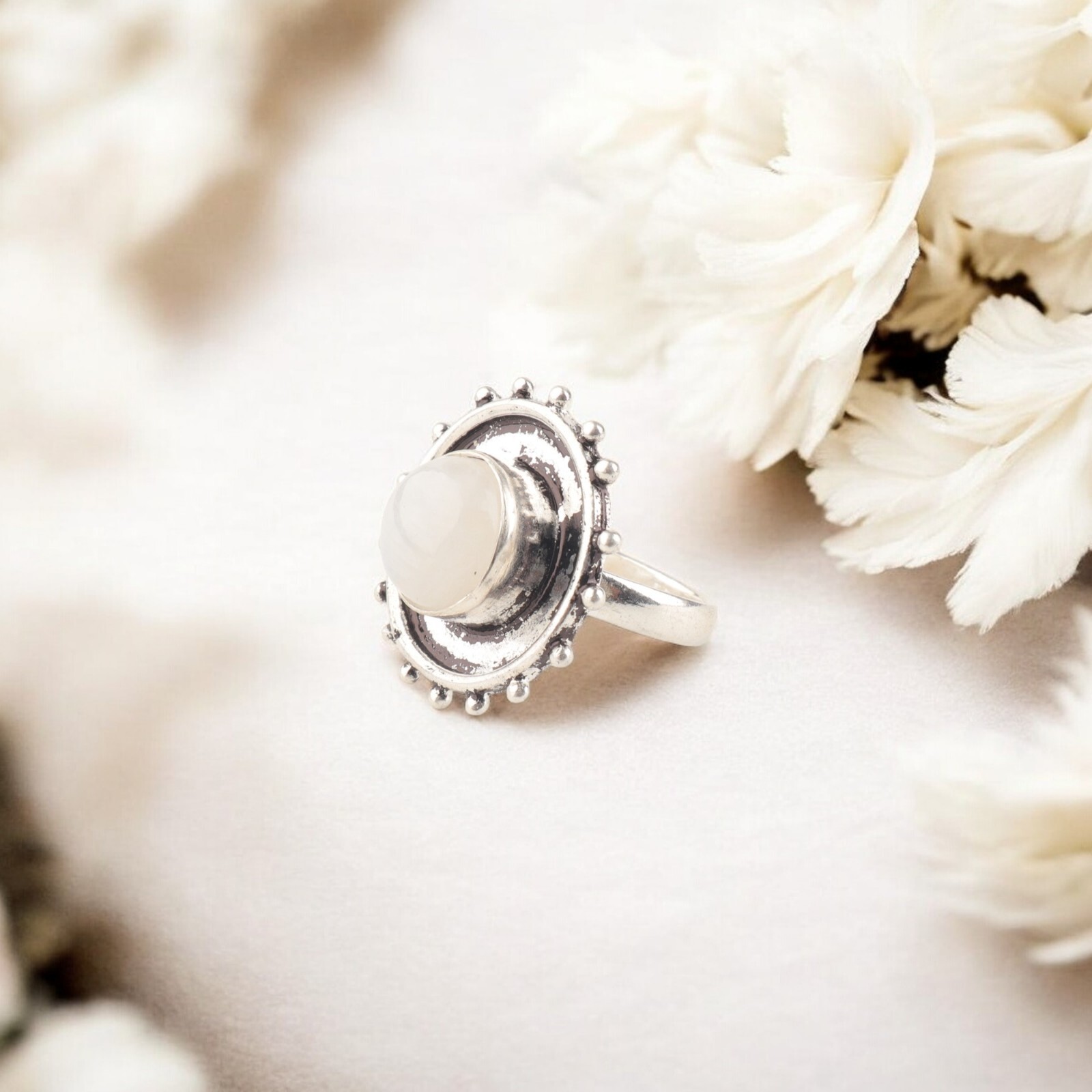 как выглядит Natural Rainbow Moonstone Oxidized Ring 925 Sterling Silver Fine Jewelry For Her фото