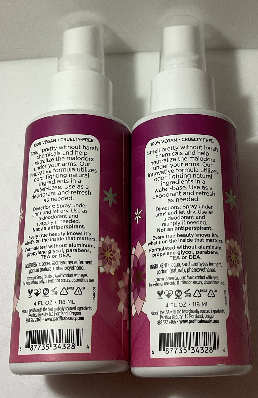 2x Pacifica Rose Flower Underarm Deodorant Water Aluminum Free 4 Oz 100 Vegan