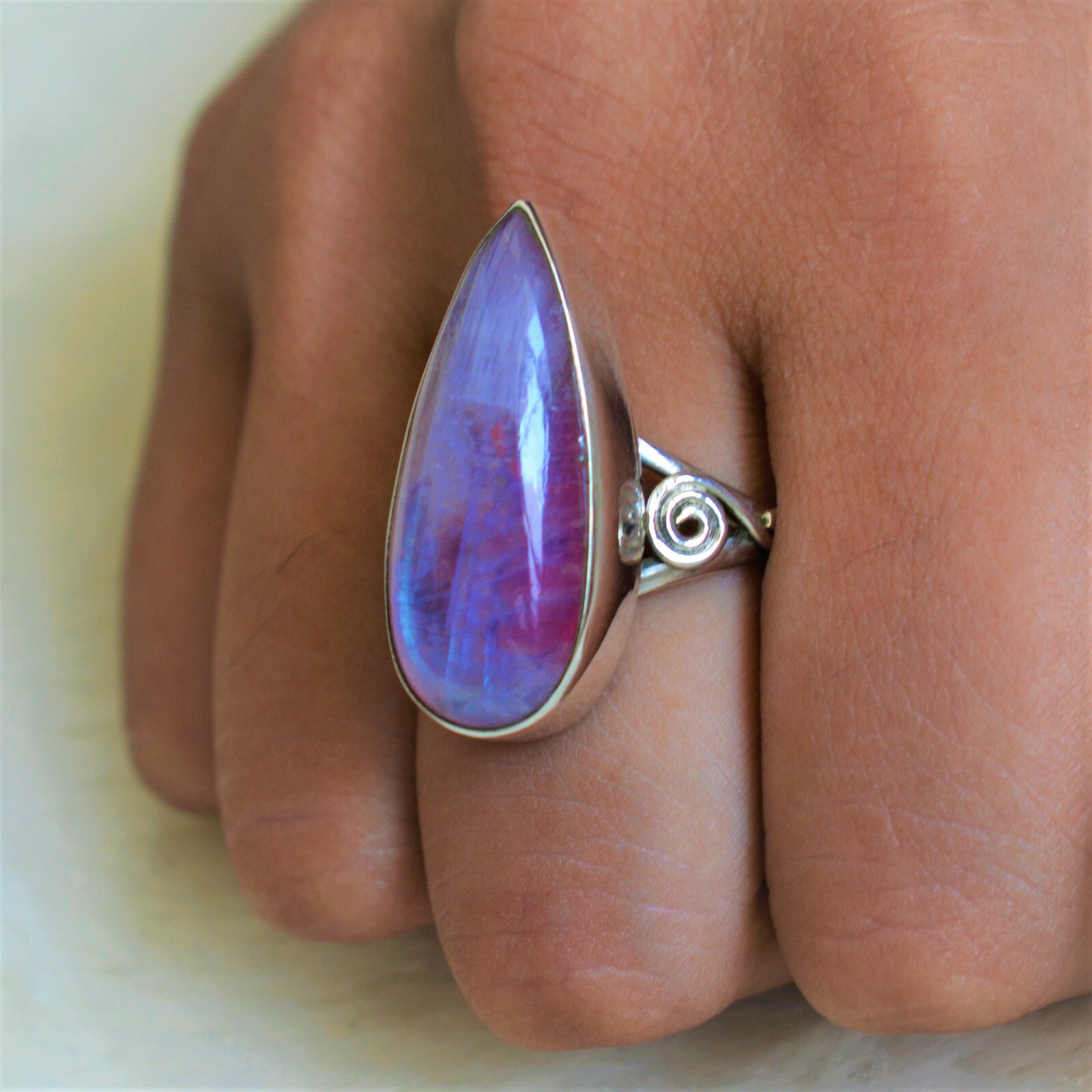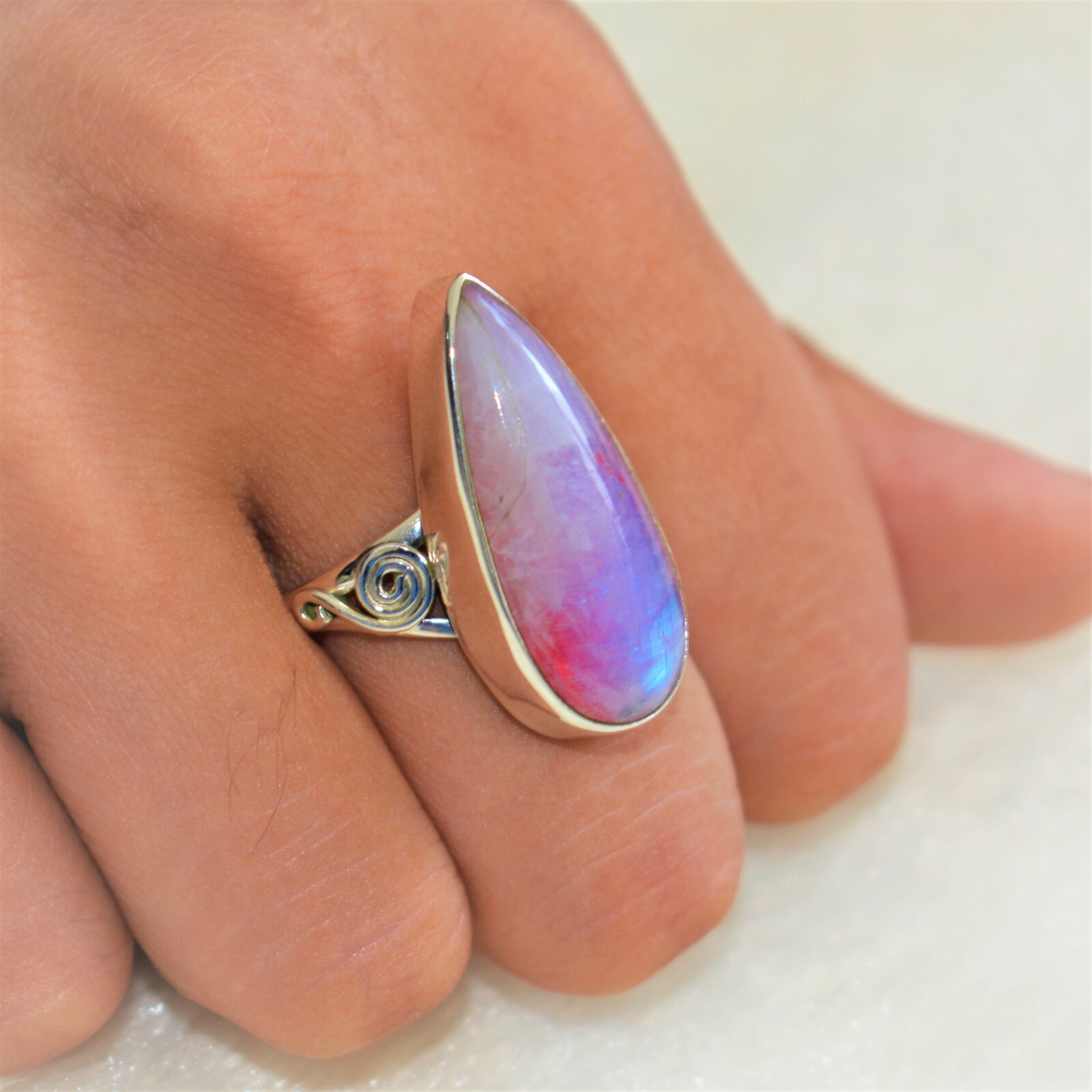 как выглядит PINK RAINBOW MOONSTONE NATURAL GEMSTONE 925 SOLID STERLING SILVER JEWELRY RING фото