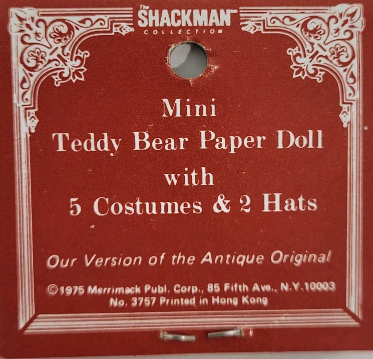 1975 VINTAGE MERRIMACK DIE CUT TEDDY BEAR PAPER DOLL