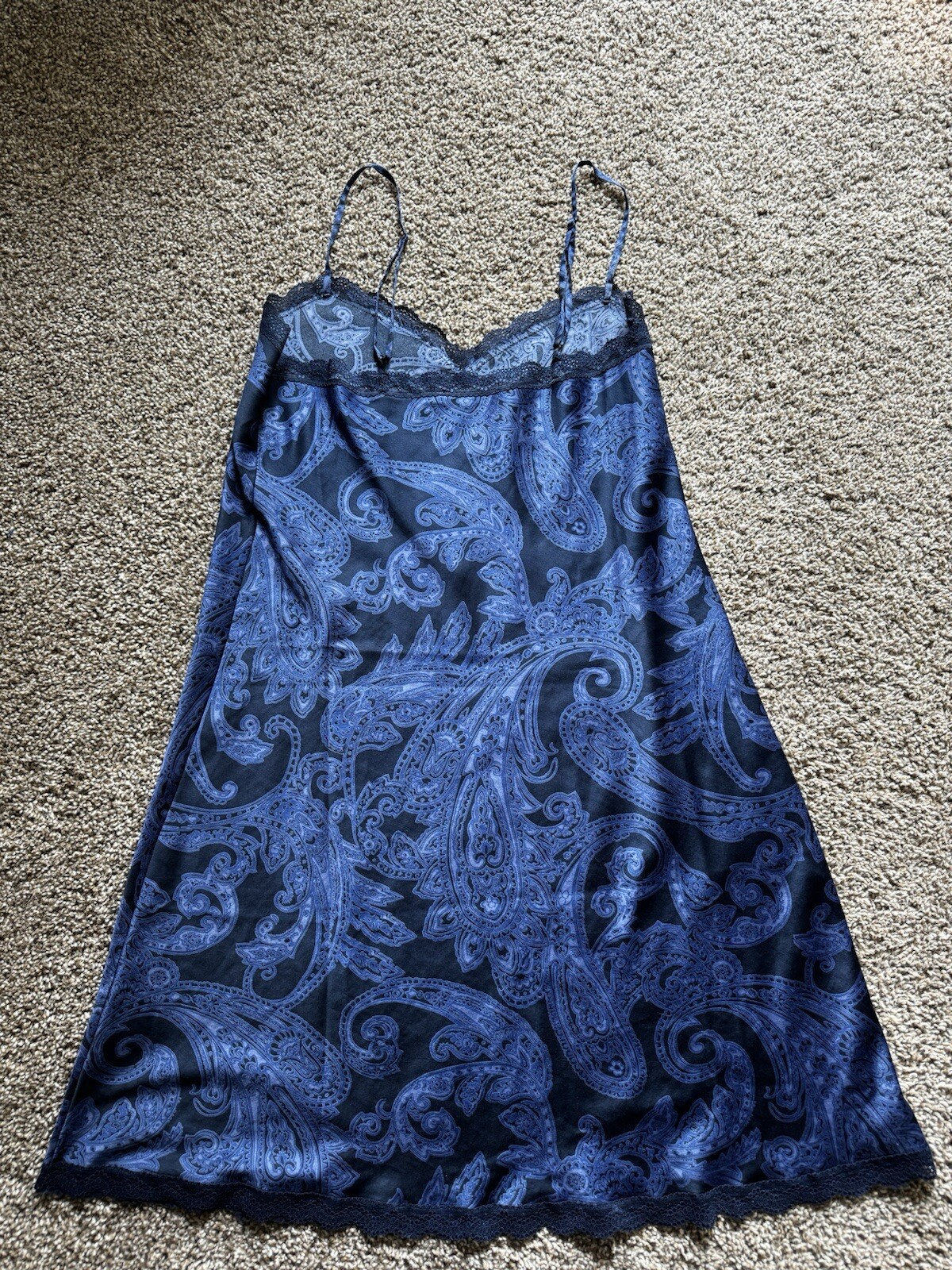 Ralph Lauren Mini Slip Dress Blue Paisley Print Size Medium Adjustable Straps