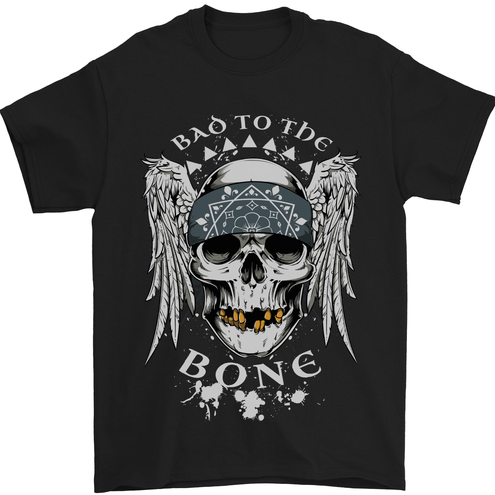 Bad 2 the Bone Biker Skull Angel Motorcycle Mens T-Shirt 100 Cotton