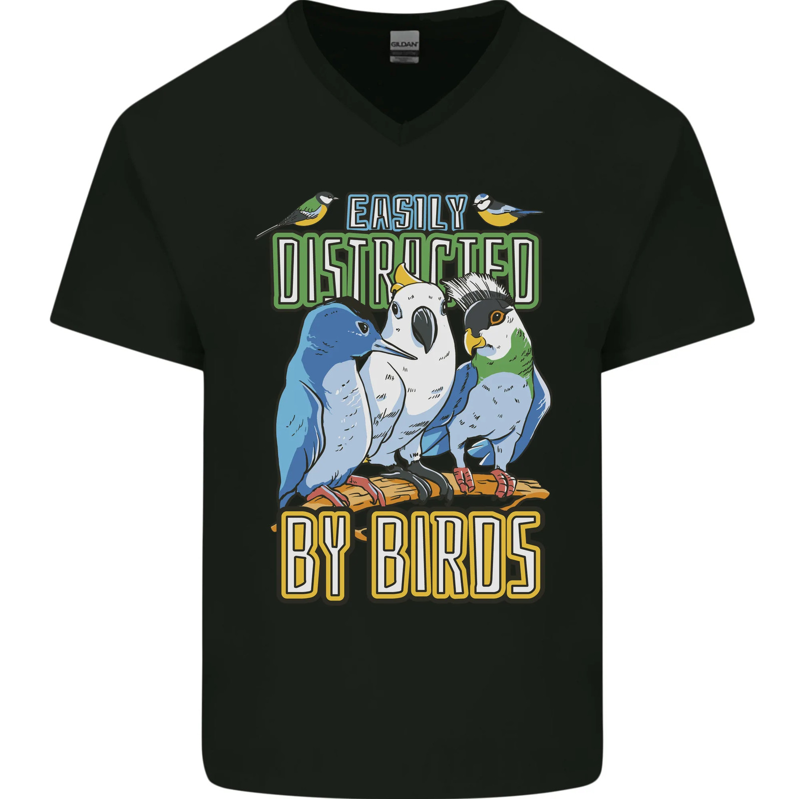 как выглядит Easily Distracted by Bird Watching Mens V-Neck Cotton T-Shirt фото