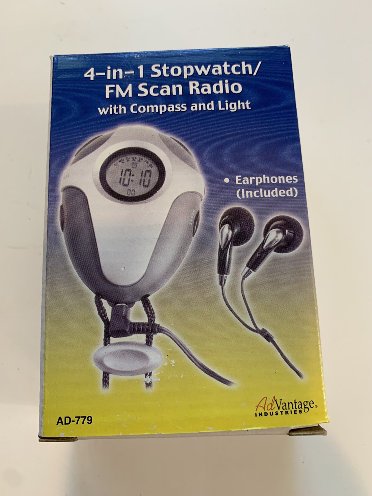4-in-1 Stopwatch/FM Scan Radio Compass And Light Hiking Walking Running Safety