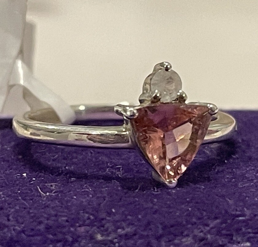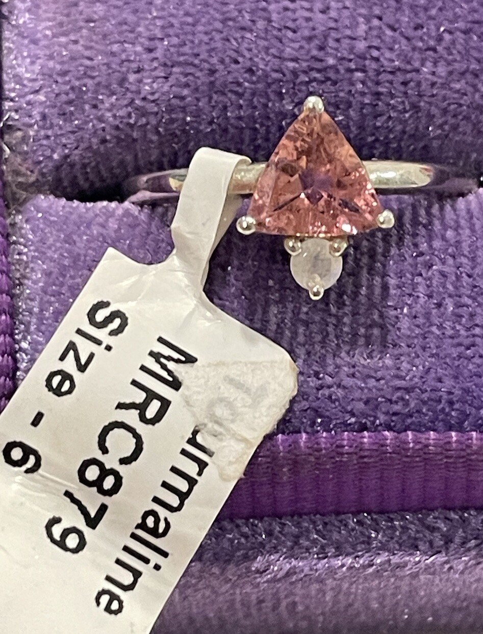 Imported 925 Dainty Genuine Natural Pink Tourmaline Rainbow Moonstone Sz6 NWT