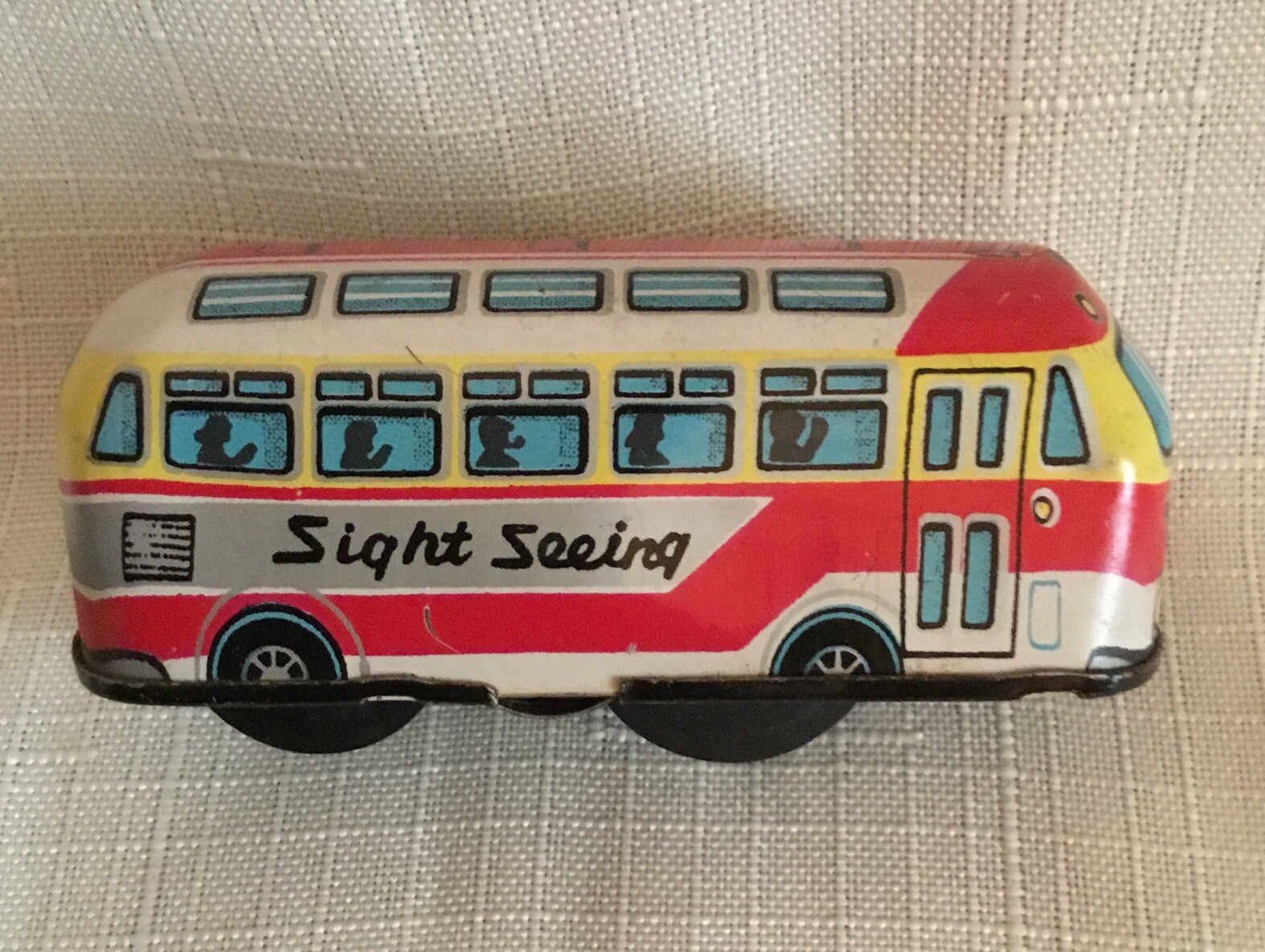 WORKING Vintage Tin Toy wind up sight seeing Bus