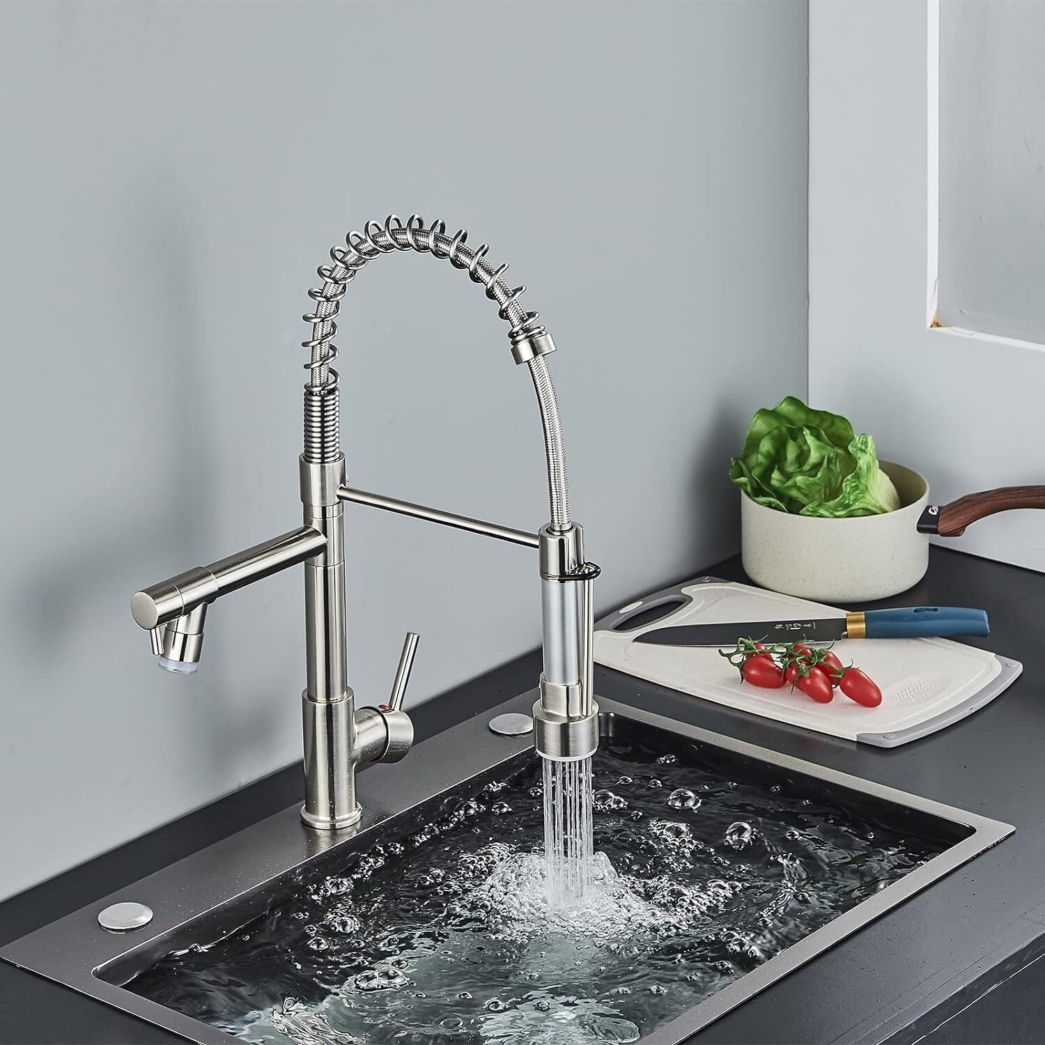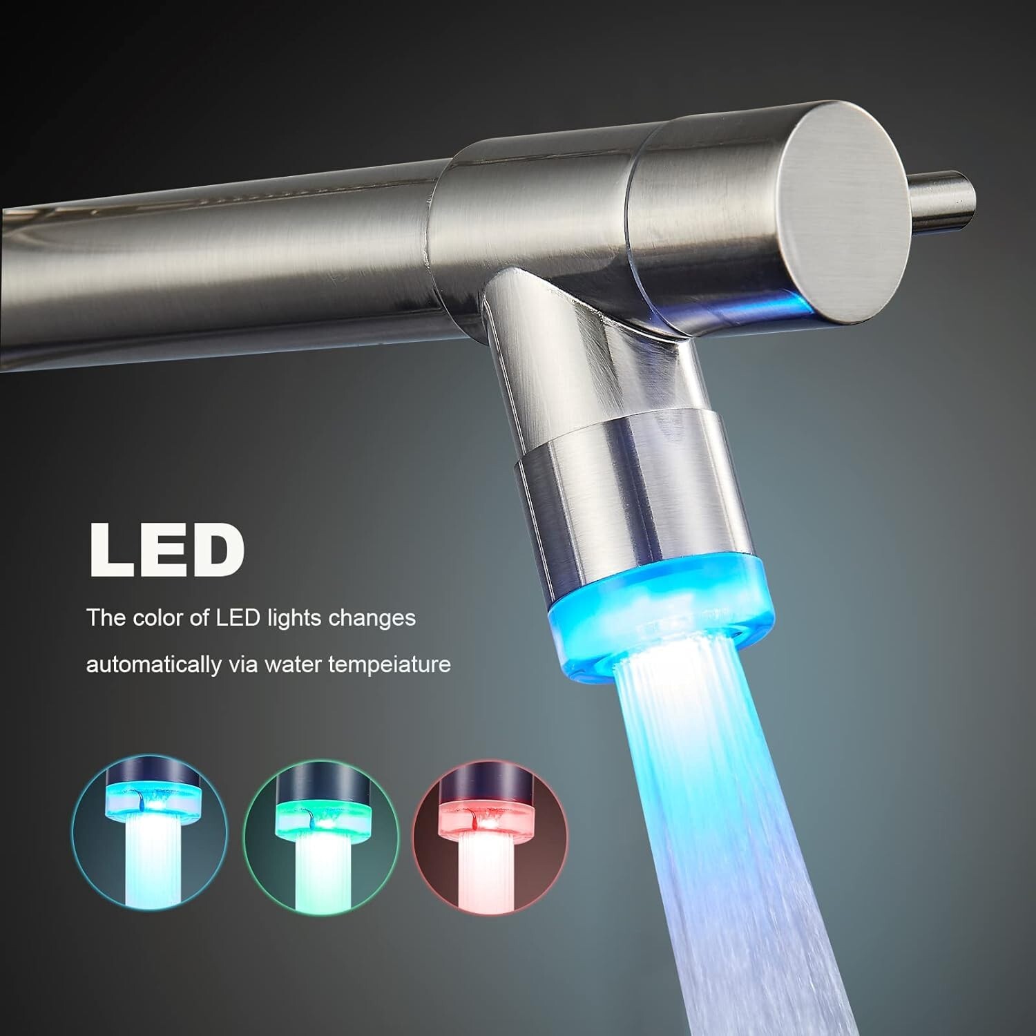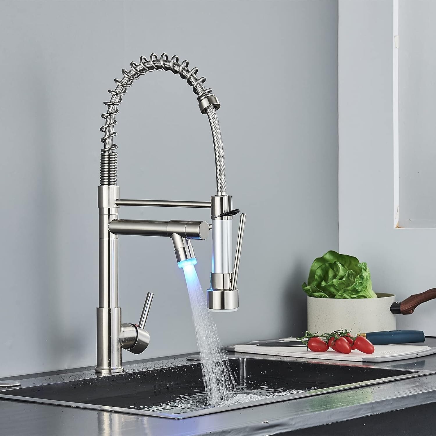 LED Kitchen Sink Faucet Pull Down Swivel Sprayer One Hole Mixer Brushed Nickel