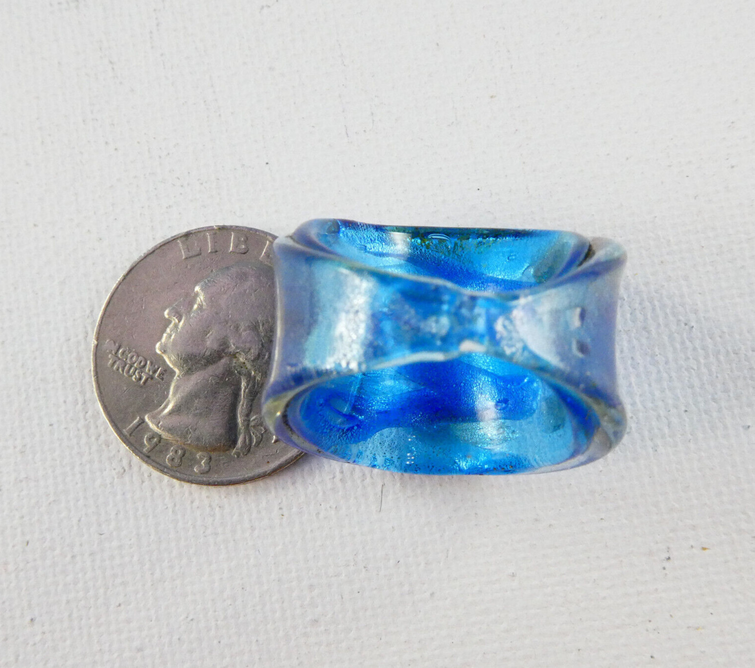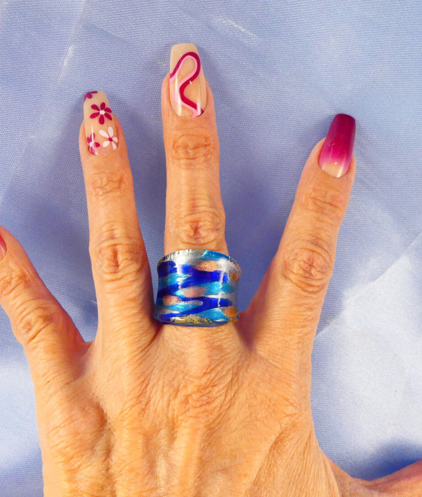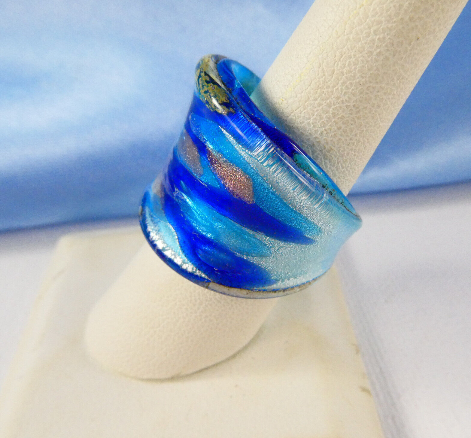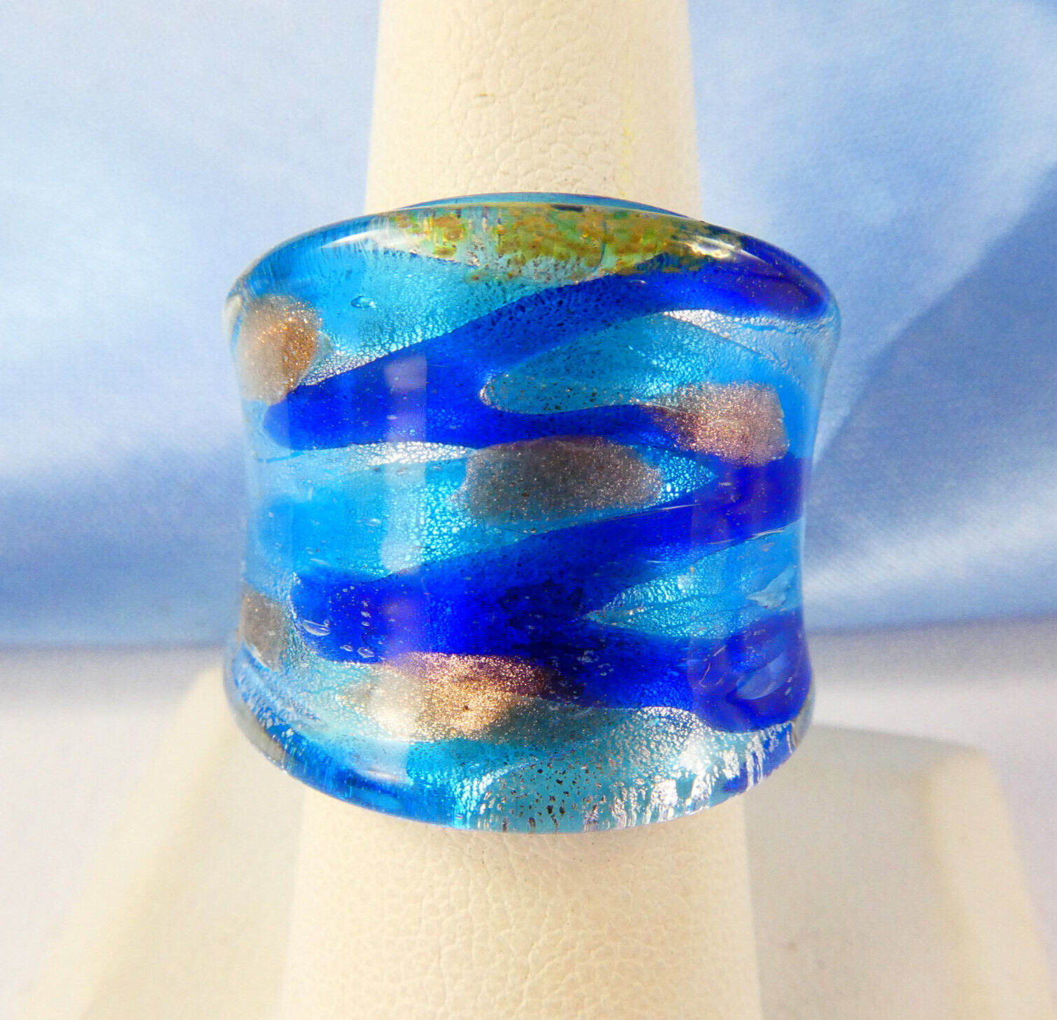 Shades of Blue Dichroic Glass RING Size 6.75 Wide Beautiful BLUE
