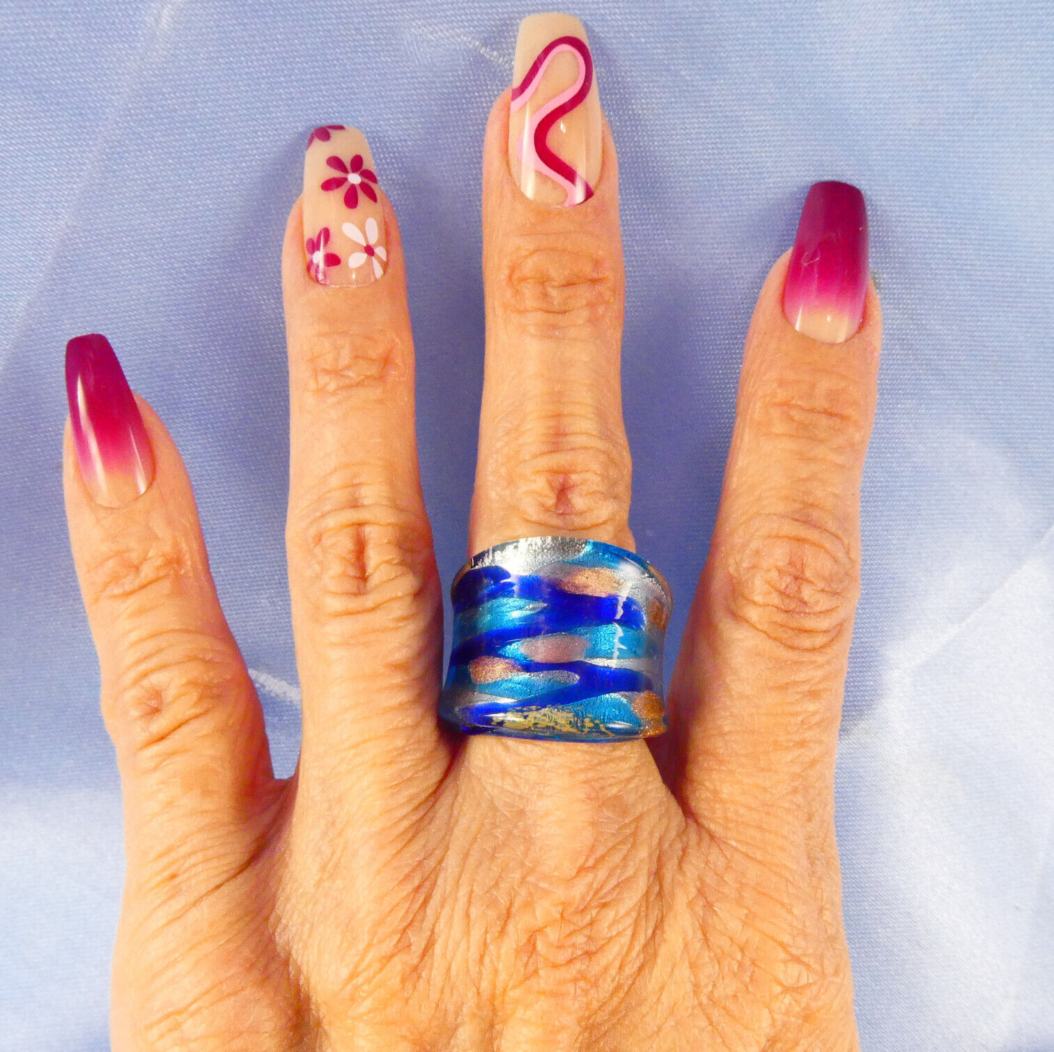 как выглядит Shades of Blue Dichroic Glass RING Size 6.75 Wide Beautiful BLUE фото