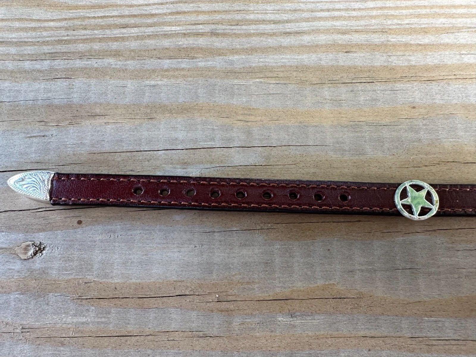как выглядит AU-HB51A-S Western Hat Band Brown Leather with Silver Star Conchos 3/8" Wide фото