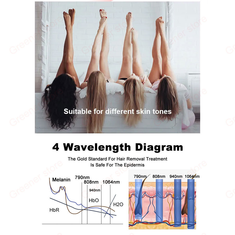 Diode Laser 790nm 808nm 940nm 1064nm 4 Wave Hair Removal Machine Cooling System