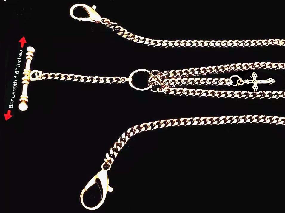 Gold Plated Strong Pocket Watch Albert Double Chain With Ornate Cross Fob