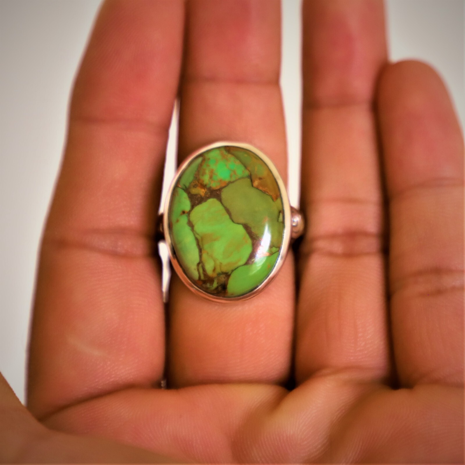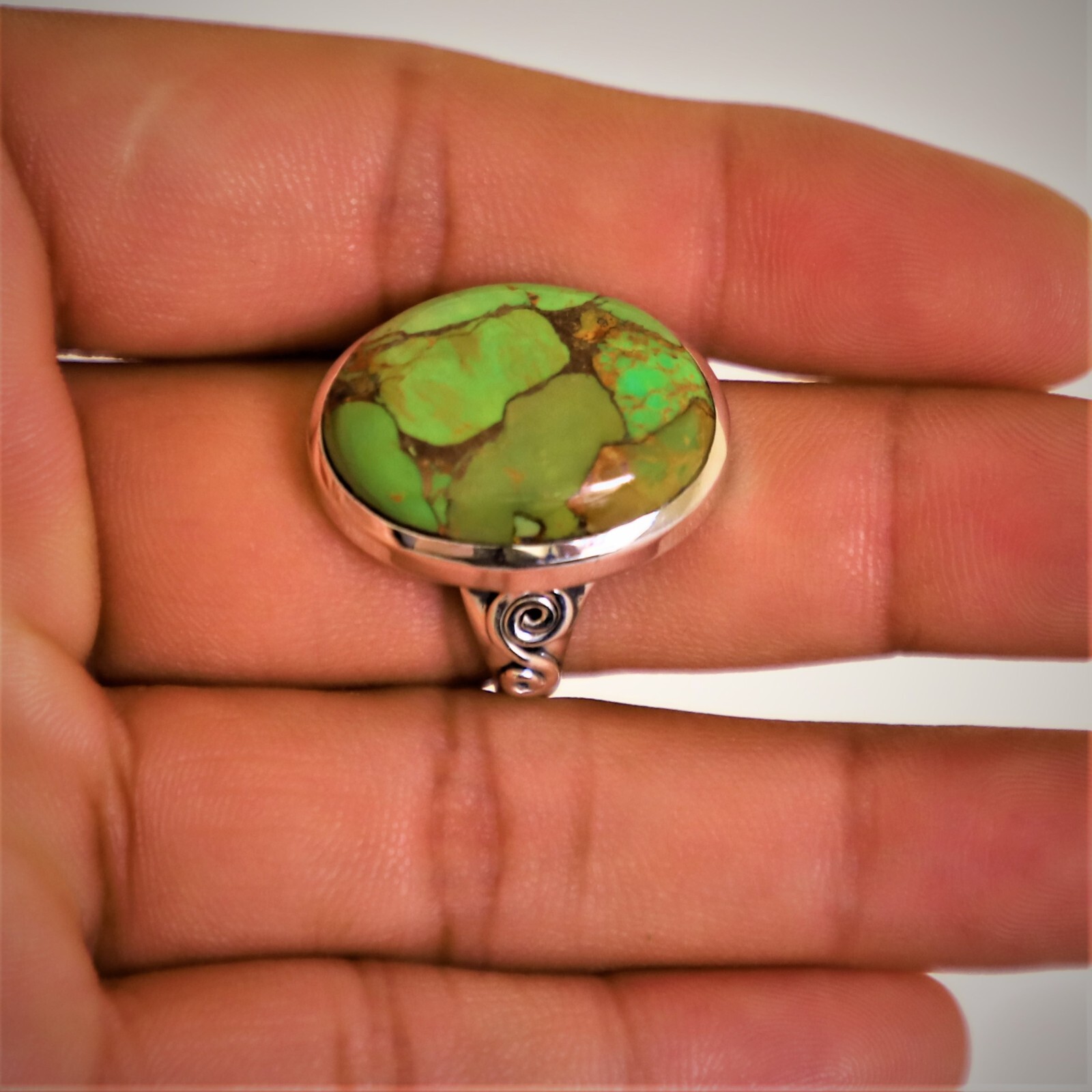 как выглядит MOHAVE GREEN TURQUOISE NATURAL GEMSTONE 925 STERLING SILVER JEWELRY RING 3 TO 12 фото