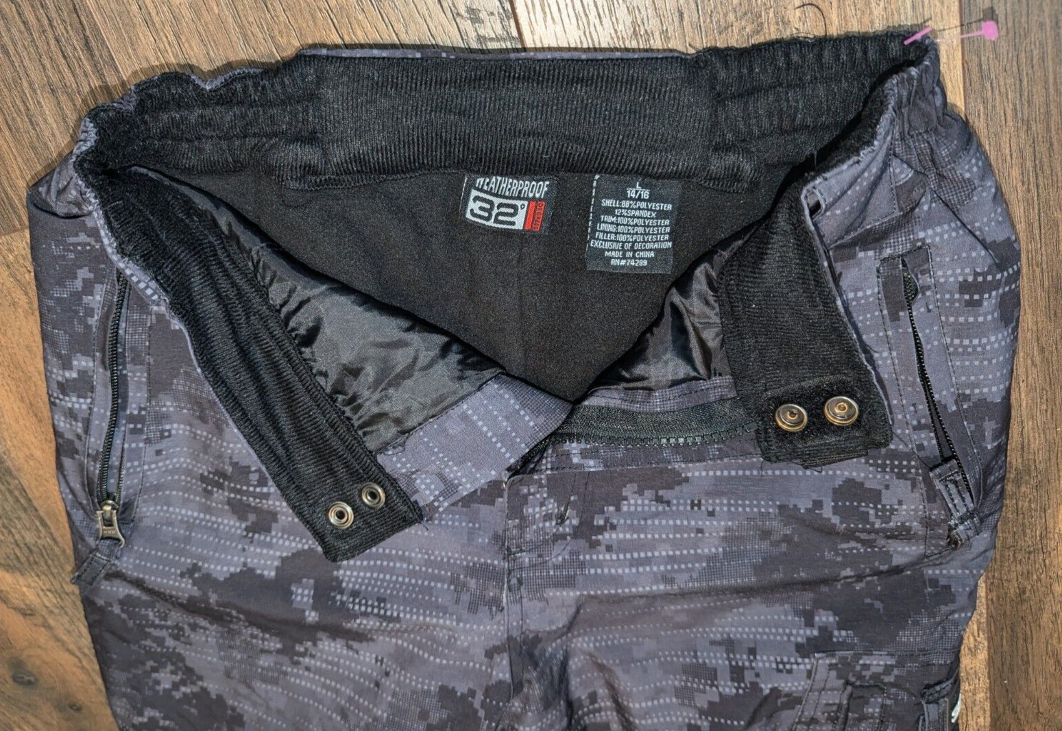 как выглядит 32 DEGREES WEATHERPROOF DARK CAMO SNOW SKI SNOWBOARD PANTS - SIZE LARGE 14/16 фото