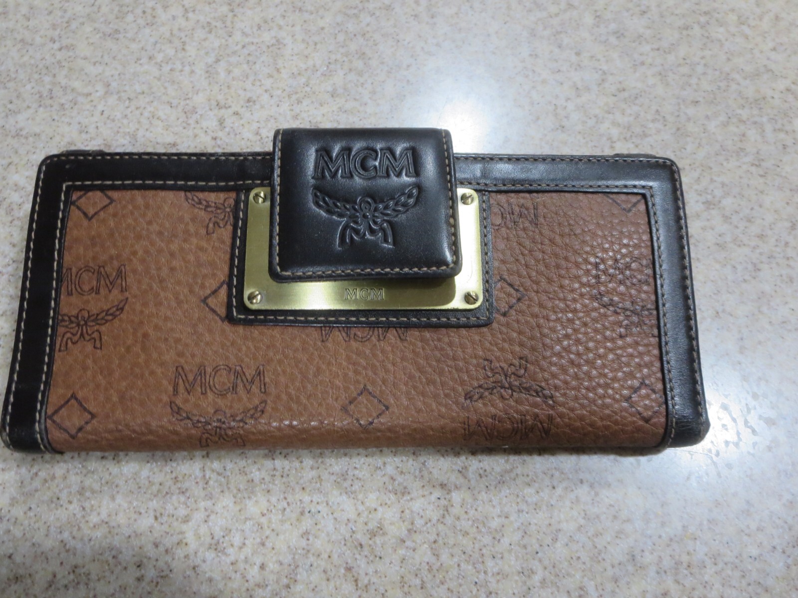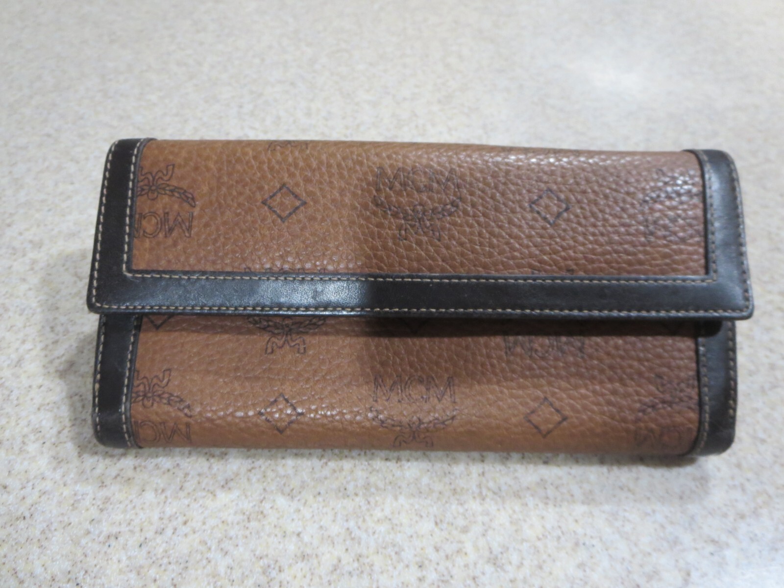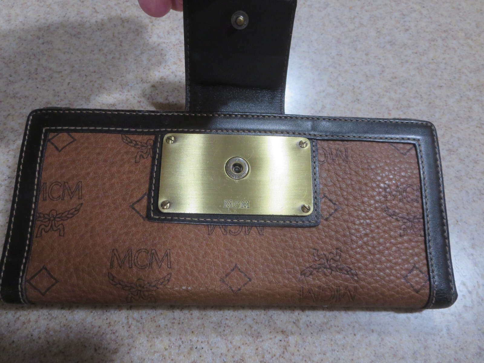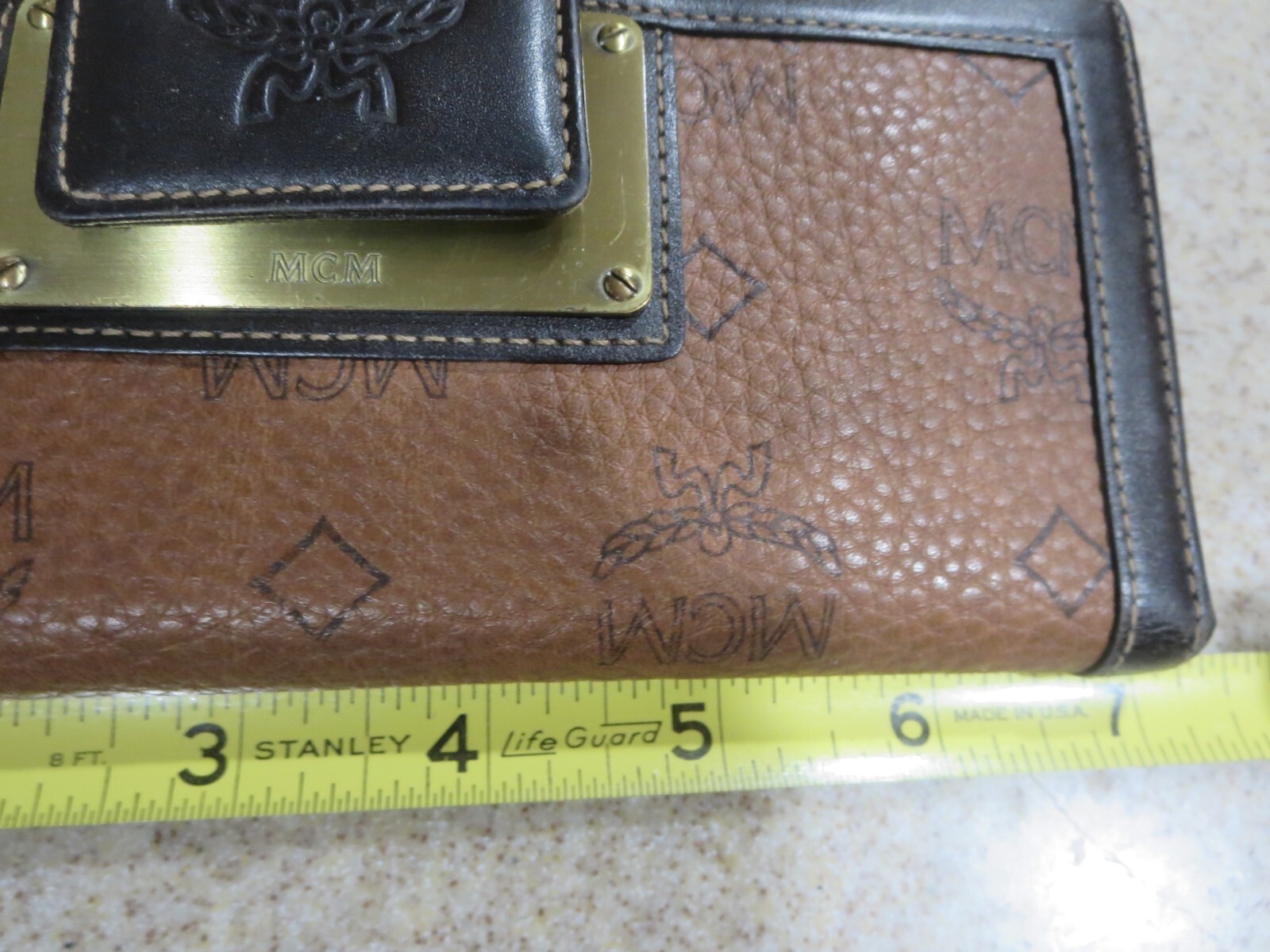 как выглядит MCM Visetos Logo Flap Coated Canvas Large Trifold Wallet-Brown GUC  Authentic фото