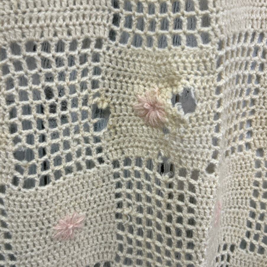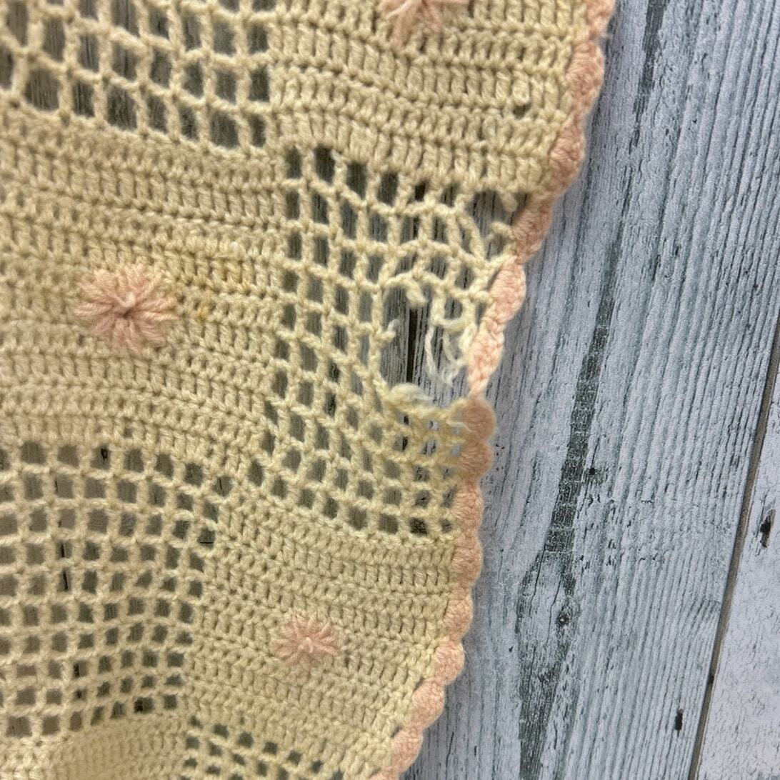 как выглядит Vintage Hand Crocheted Small Scalloped Edge Pink Flower Baby Throw Blanket фото