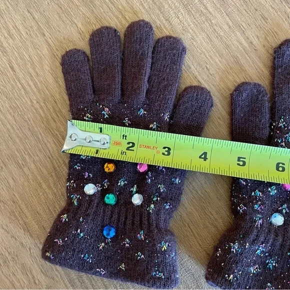 как выглядит Vintage 90s Kids / Children s Knit Gloves Brown with Multicolored Gems Metallic фото