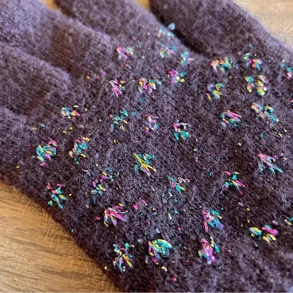 Vintage 90s Kids / Children s Knit Gloves Brown with Multicolored Gems Metallic