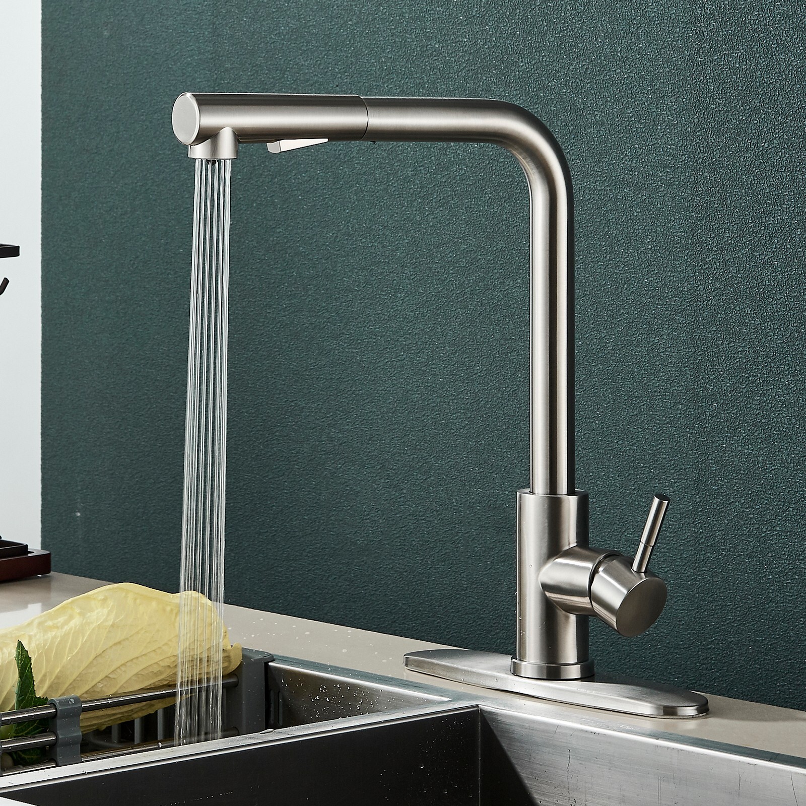 Kitchen Sink Faucet Pull Down Sprayer Single Handle Swivel Mixer Tap Brushed