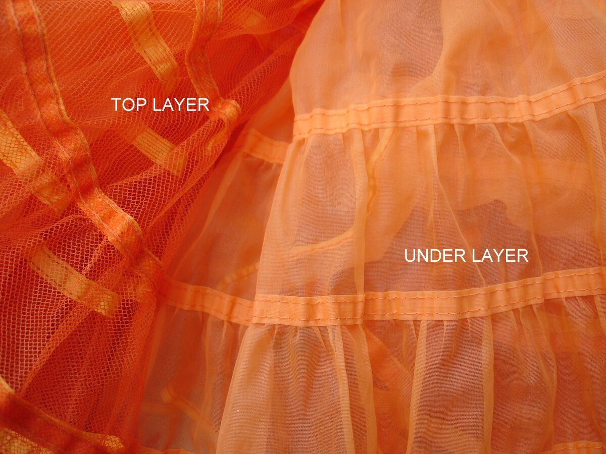 VtG Crinoline Petticoat Full 2 Layers Orange Net Ribbon Trim Cosplayn Halloween