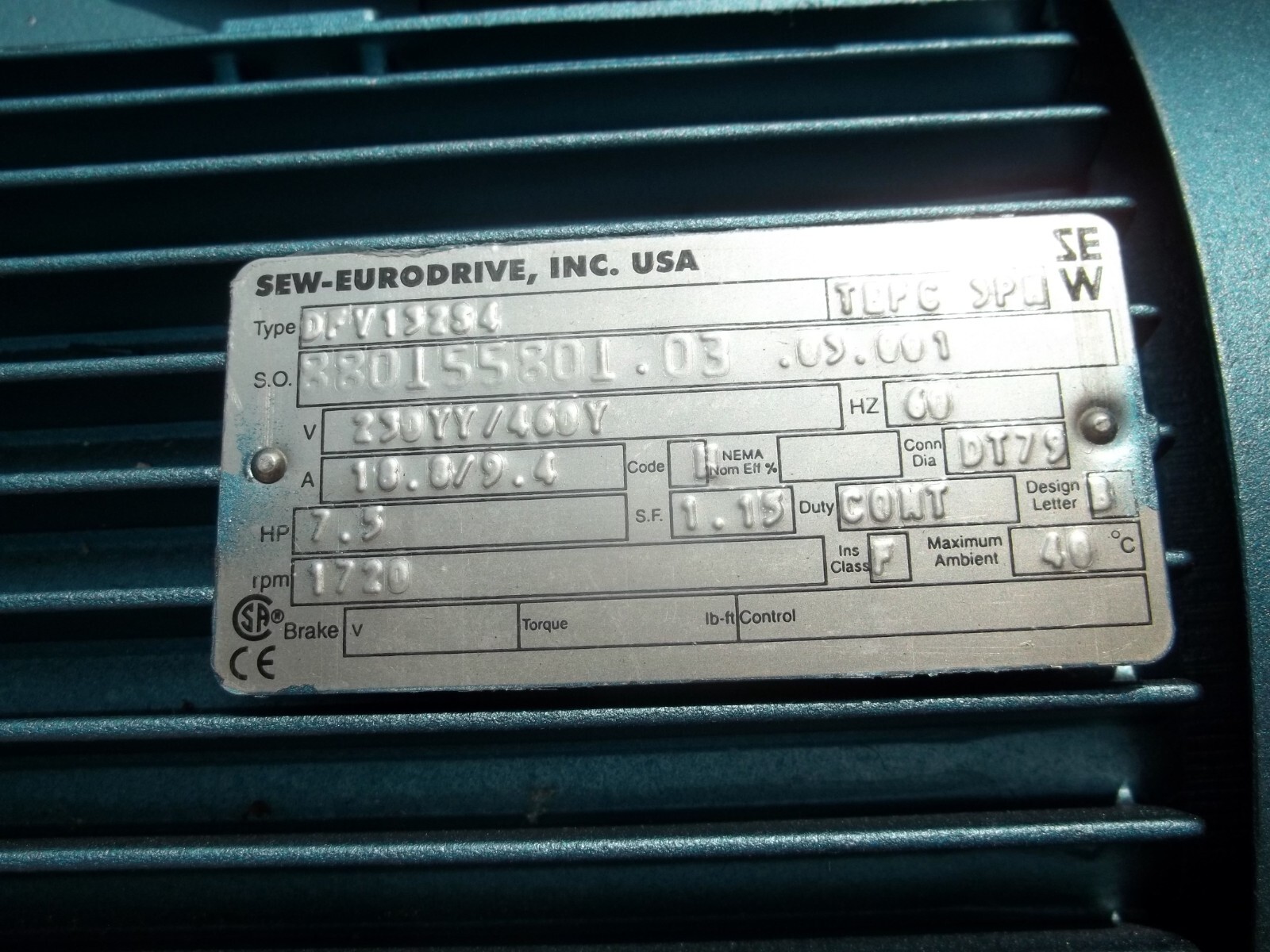 SEW EURODRIVE GEARMOTOR KA87TDV132S4 1720/47RPM RATIO 36.52 7.5HP DFV132S4 OR19