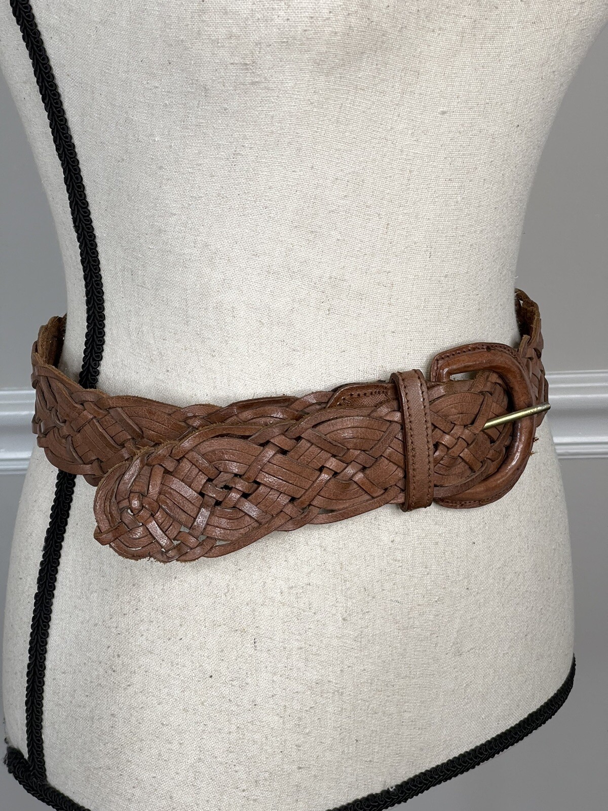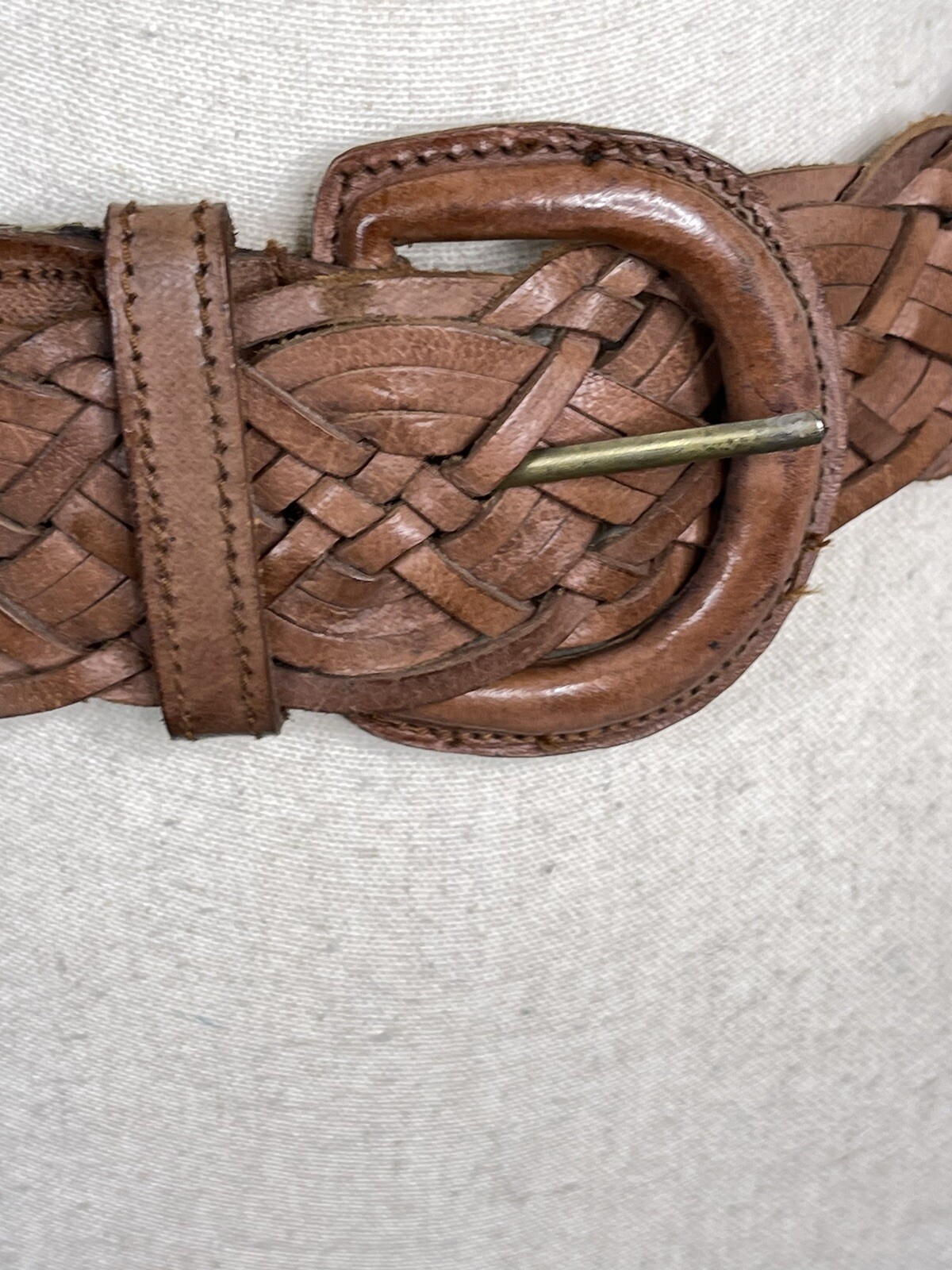 Vintage Saddlebred boho Brown Leather Belt Braided Woven Buckle Womens 36
