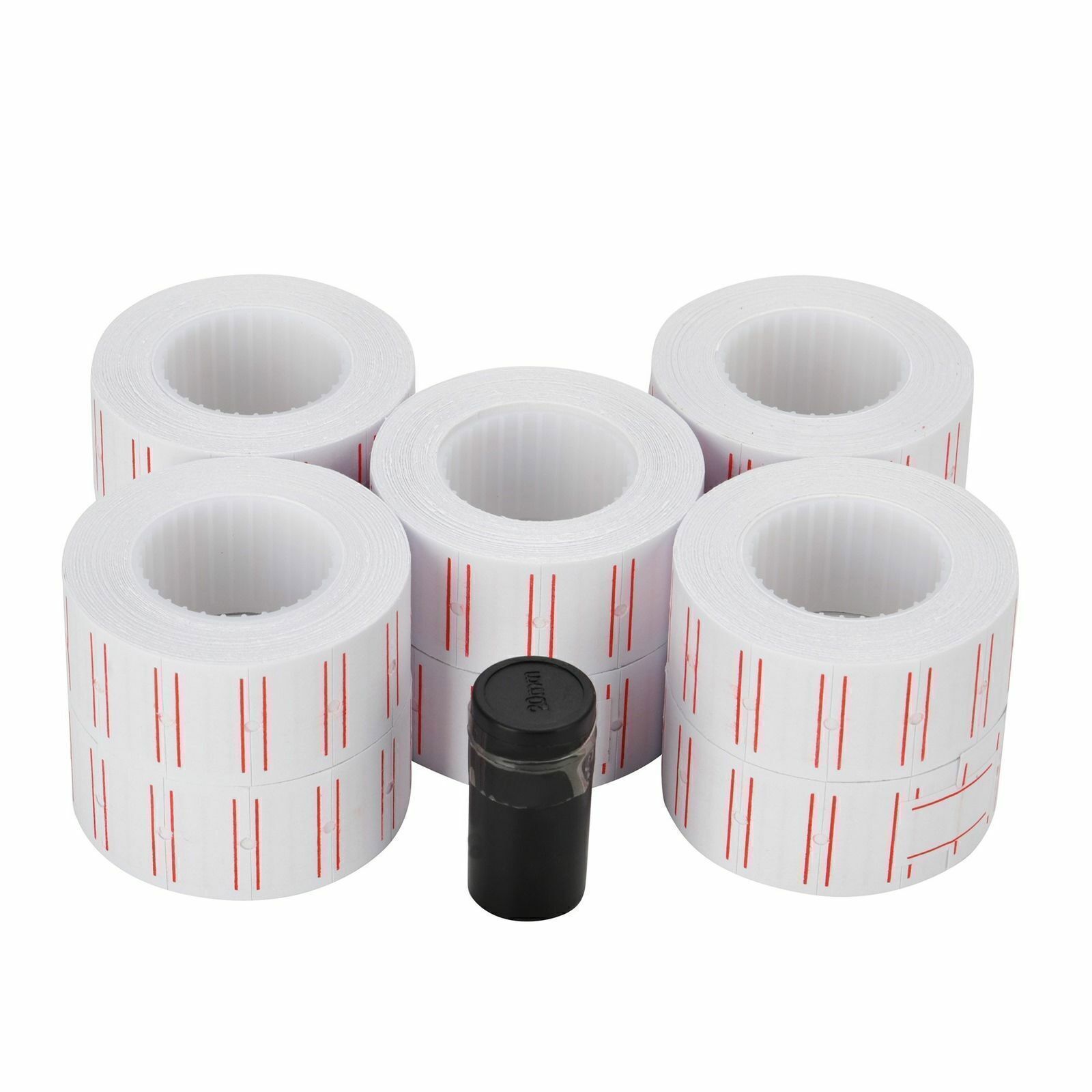 6000pcs Price Labels Gun Paper Tag 10 Rolls Sticker White Red Line For MX 5500