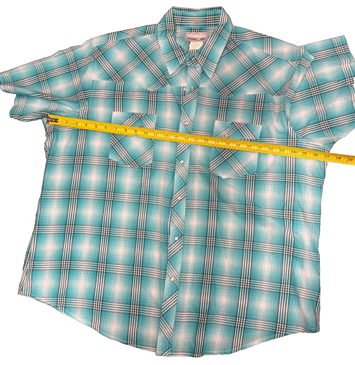 Wrangler Wrancher Pearl Snap Western Shirt Mens 2XL Short Sleeve Turquoise Plaid