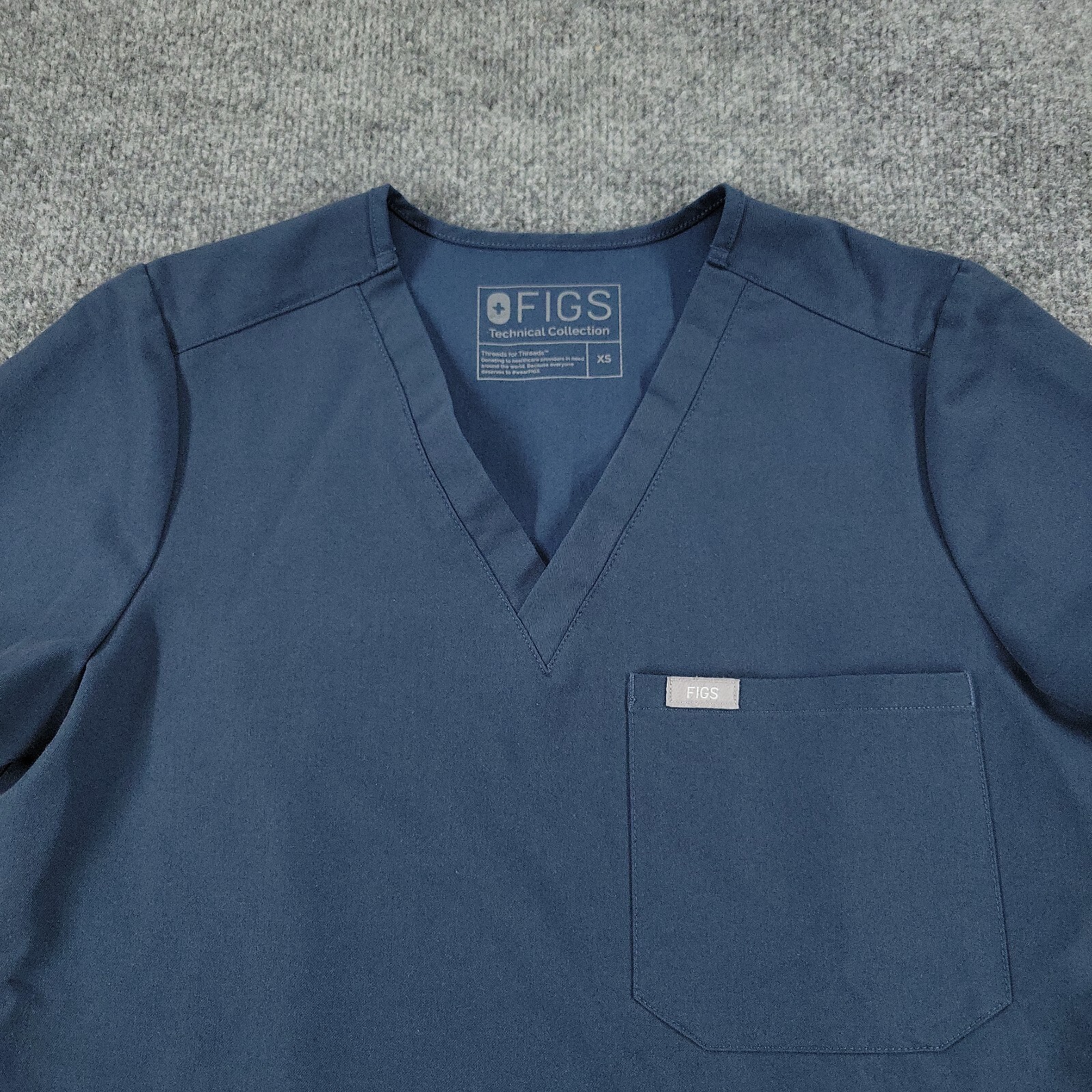 как выглядит Figs Scrub Top Shirt Womens XS Blue Technical Collection Short Sleeve Pocket фото