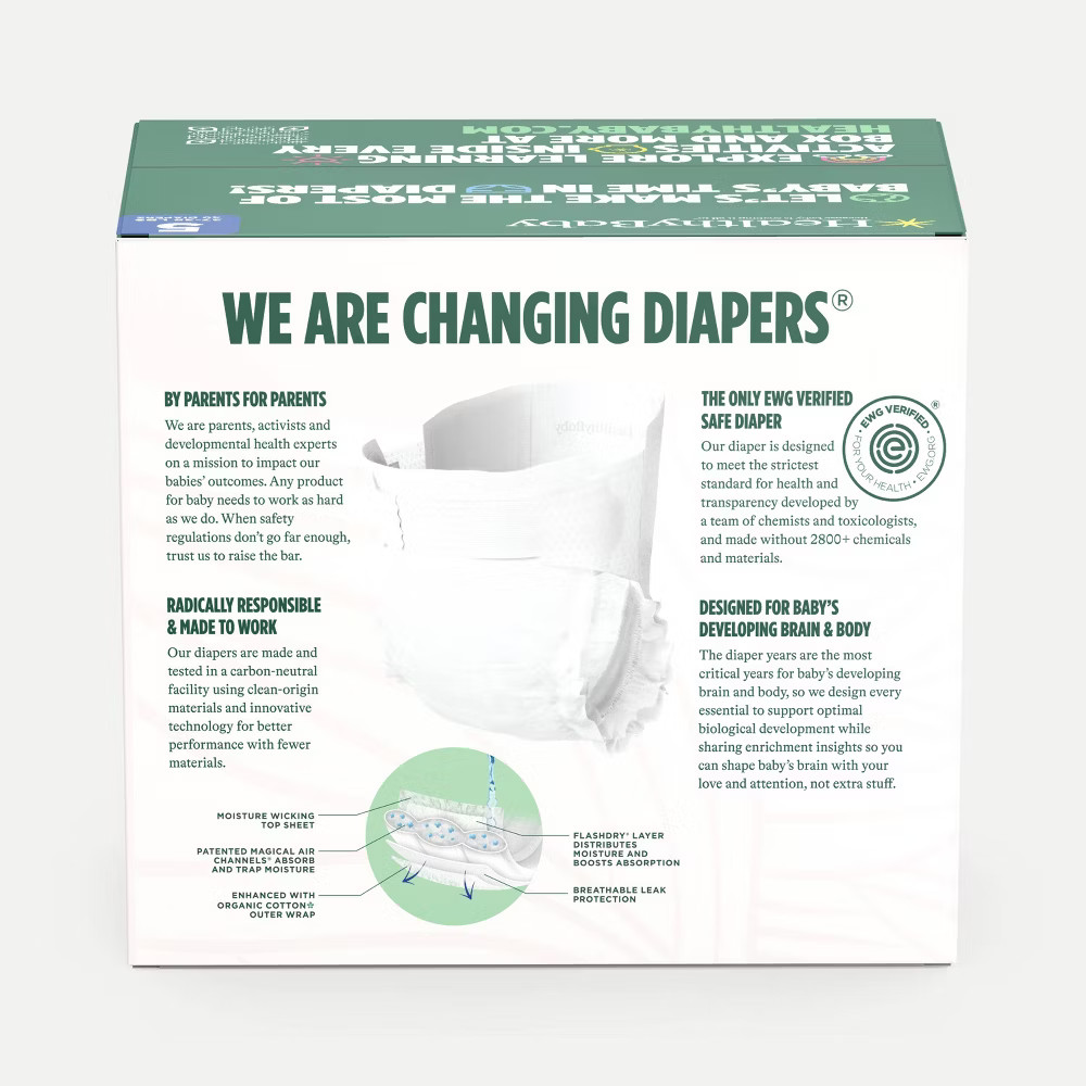 HealthyBaby Certified Safe Organic Cotton Enhanced Diapers 40ct Size 5