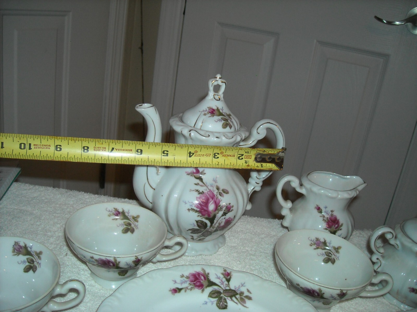 как выглядит Vintage Tea Set, Tea Pot, Sugar, Creamer, 4 Cups, 4 Saucer, 4 Plates фото