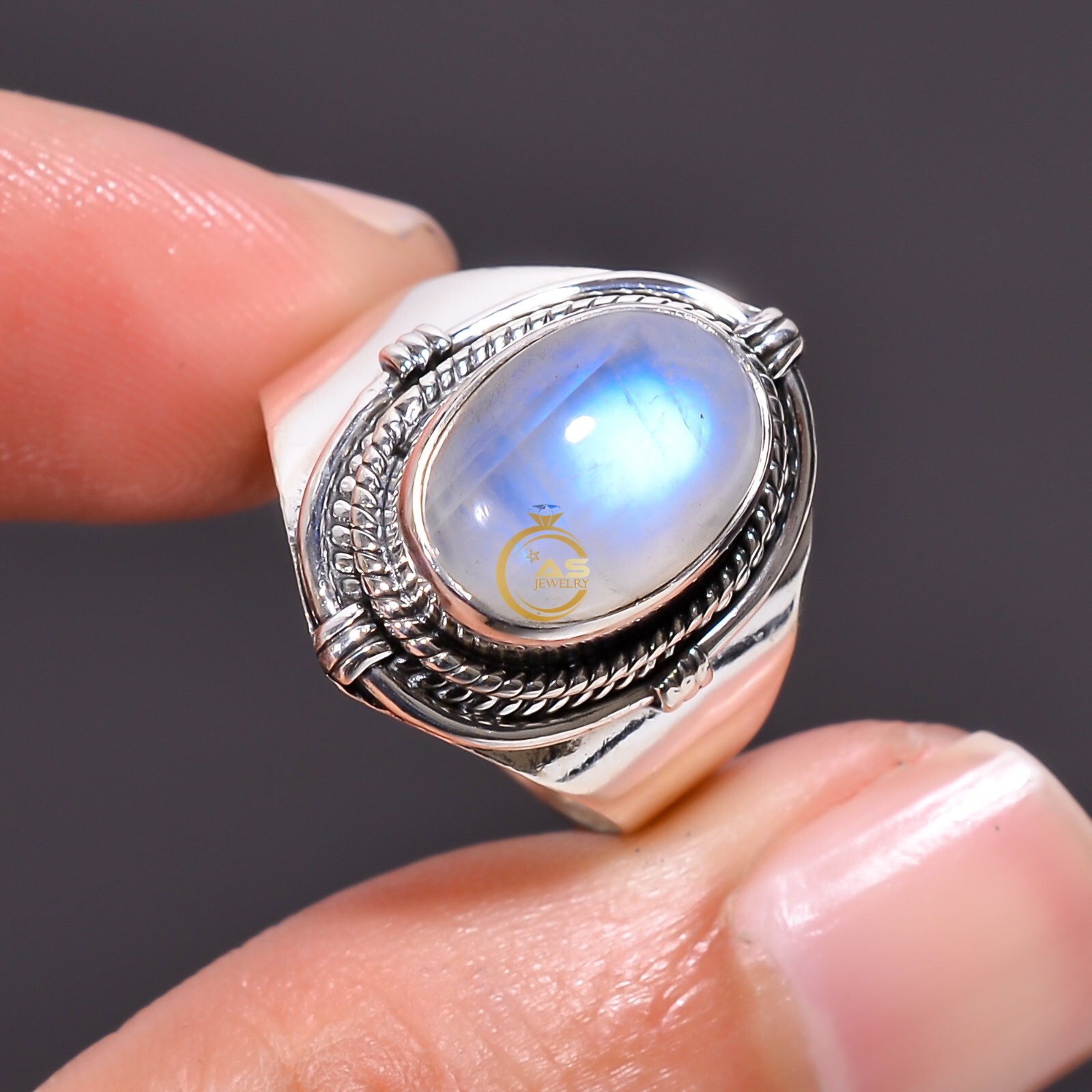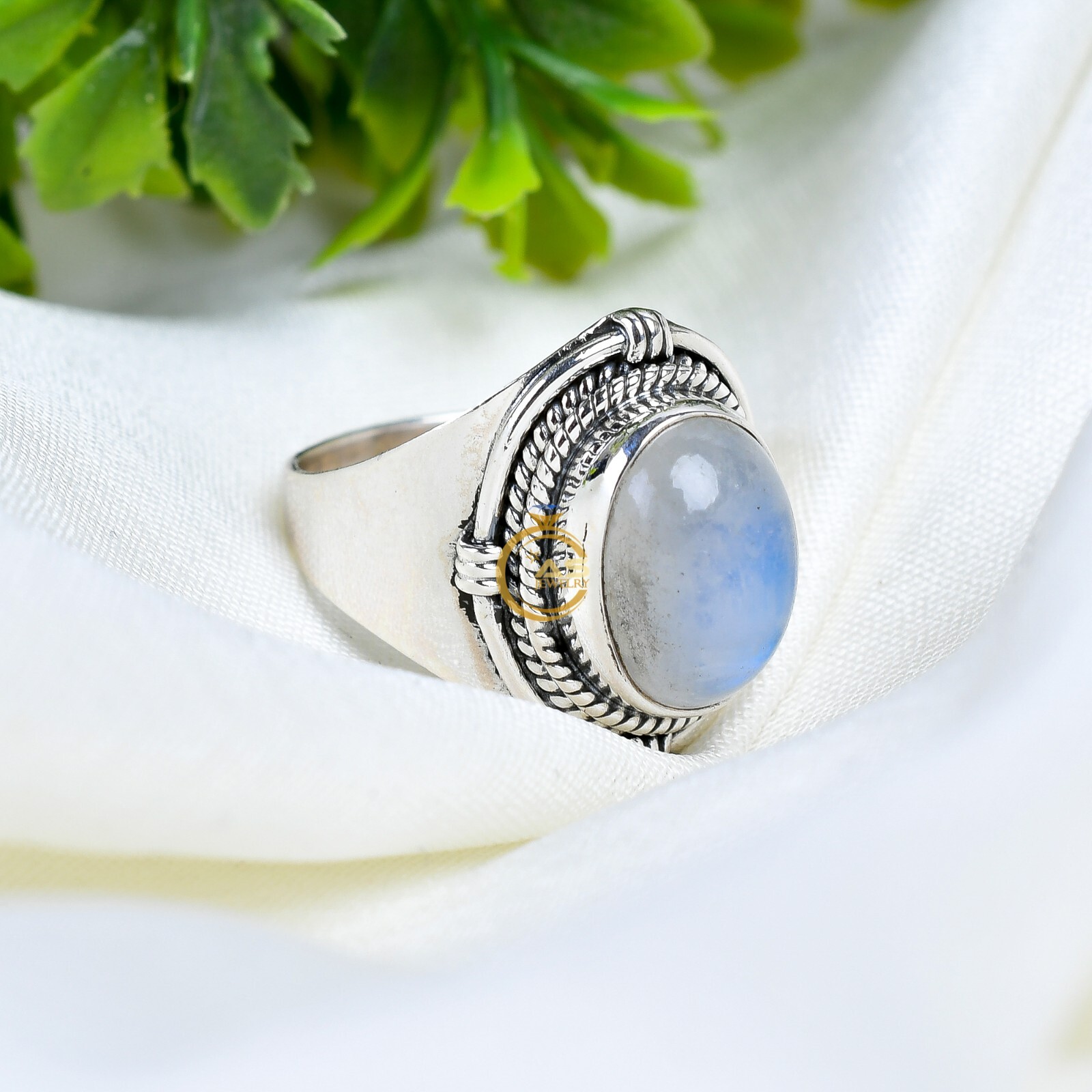 Blue Moonstone Ring 925 Sterling Silver Statement Ring Jewelry Gift for Her