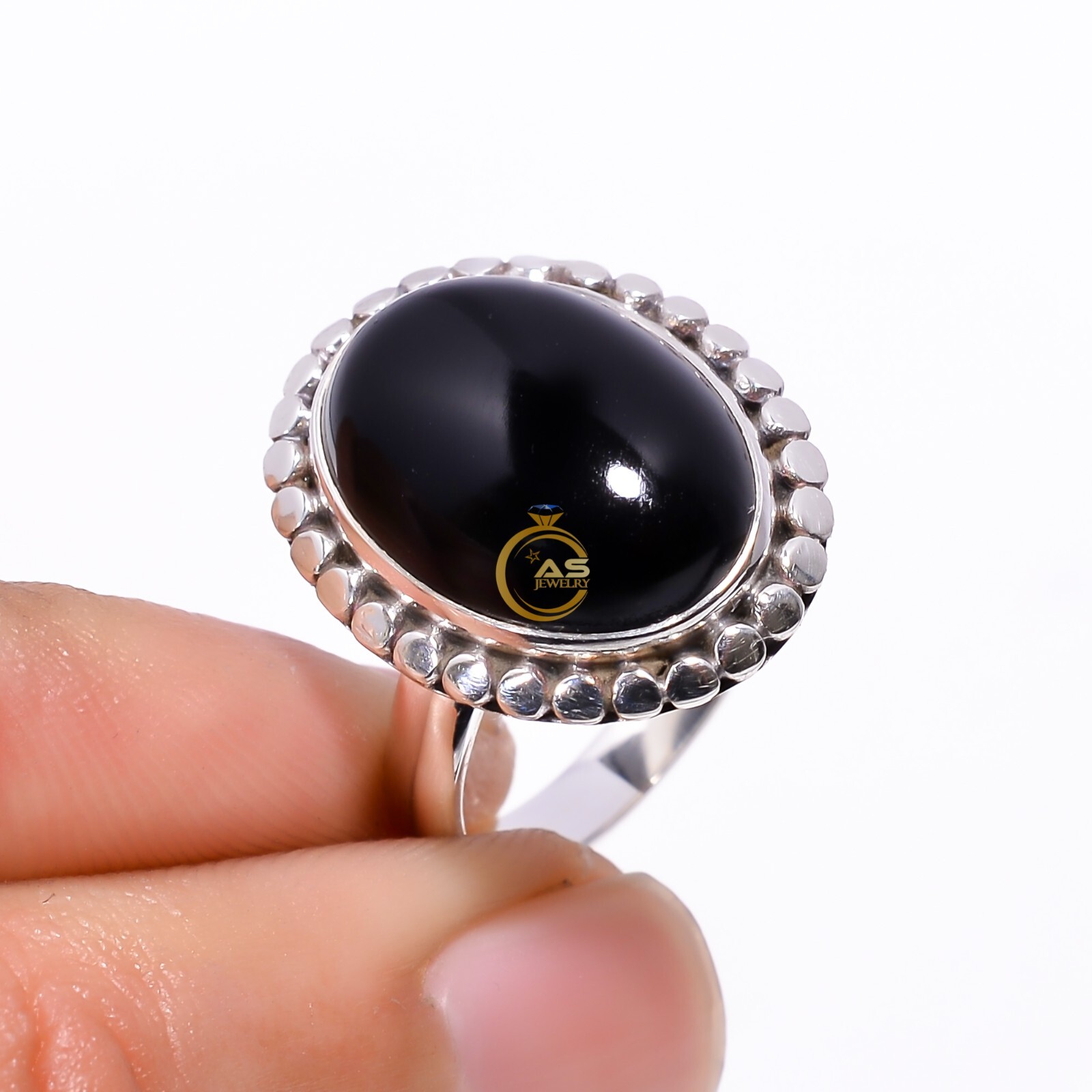 Natural Black Onyx Ring Black Stone 925 Sterling Silver Boho Rings Gift for Her