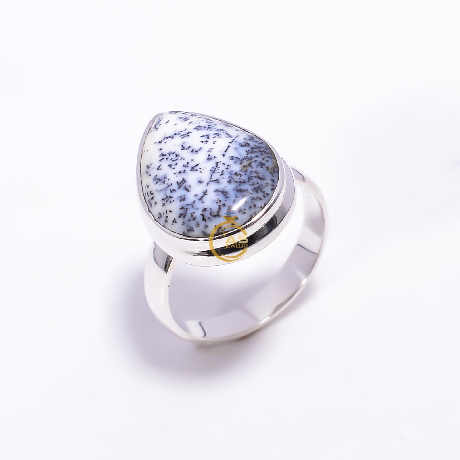 Dendrite Opal Gemstone 925 Sterling Silver Handmade Statement Boho Rings Jewelry