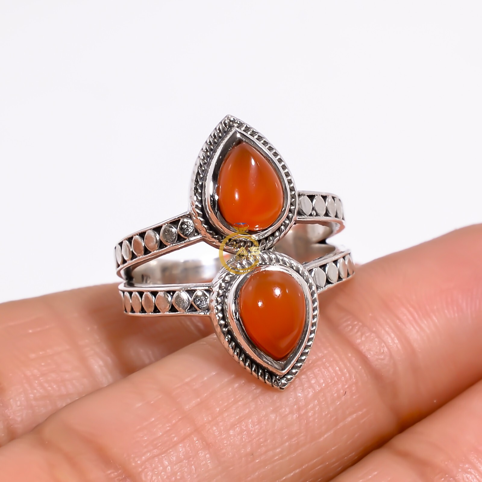 как выглядит Natural Carnelian Gemstone Ring Orange Stone 925 Sterling Silver Boho Rings фото