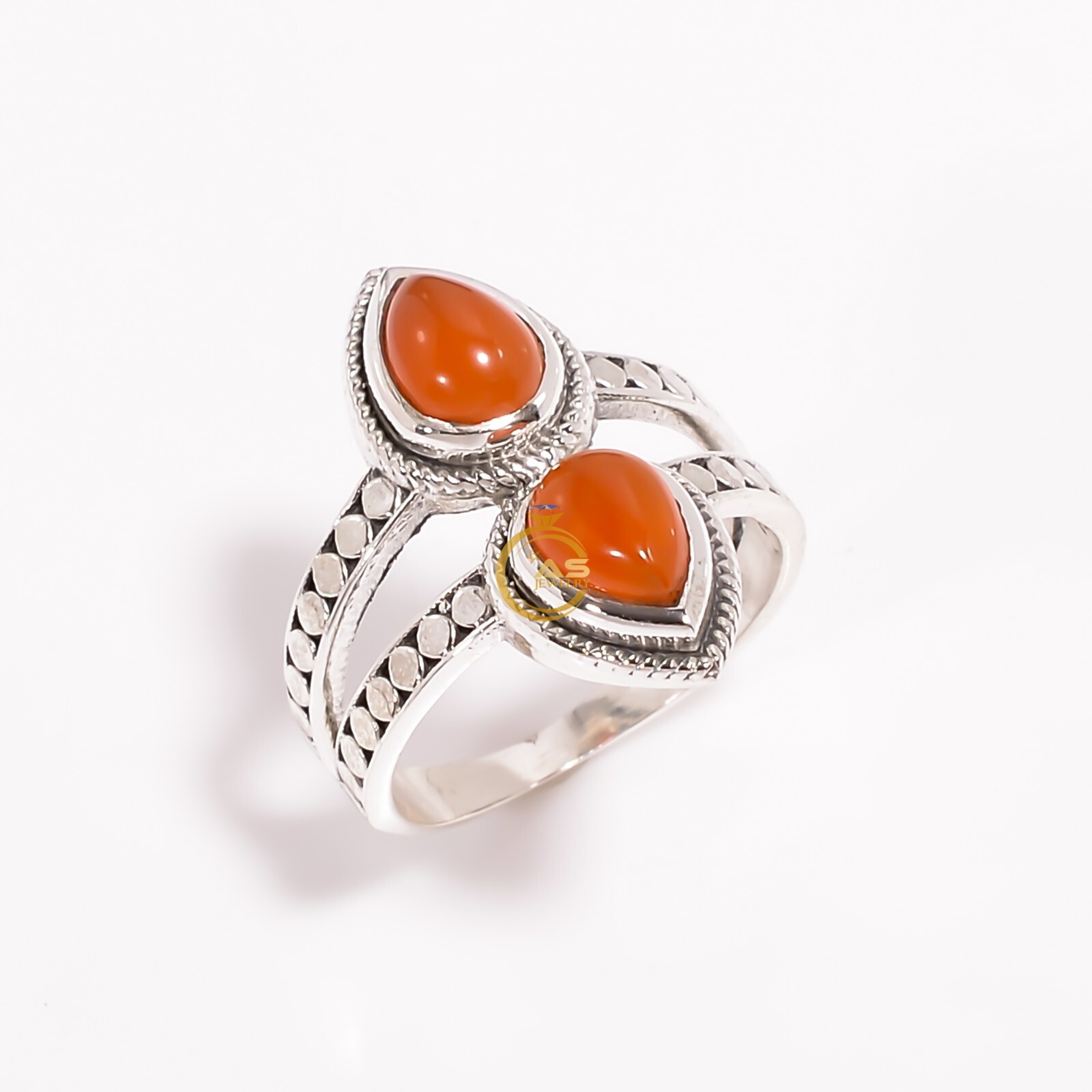 Natural Carnelian Gemstone Ring Orange Stone 925 Sterling Silver Boho Rings