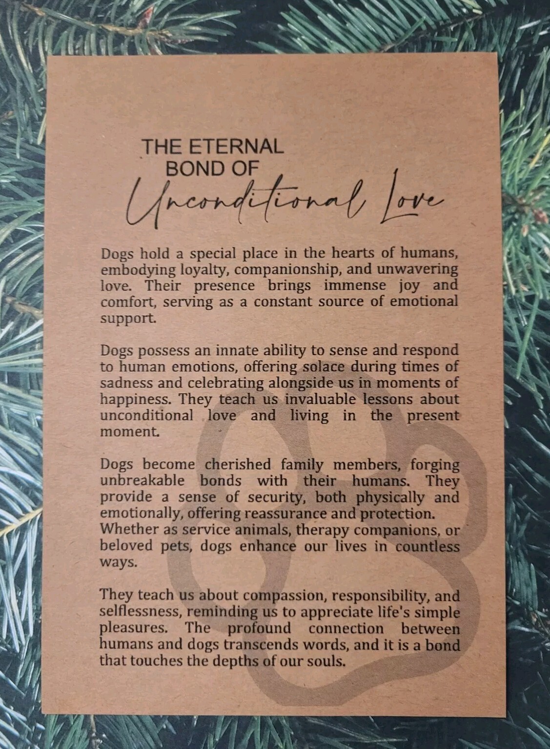 • Dog Paw Ornament Unconditional Love Story Keepsake, Pet Memorial Gift, Dog Lover