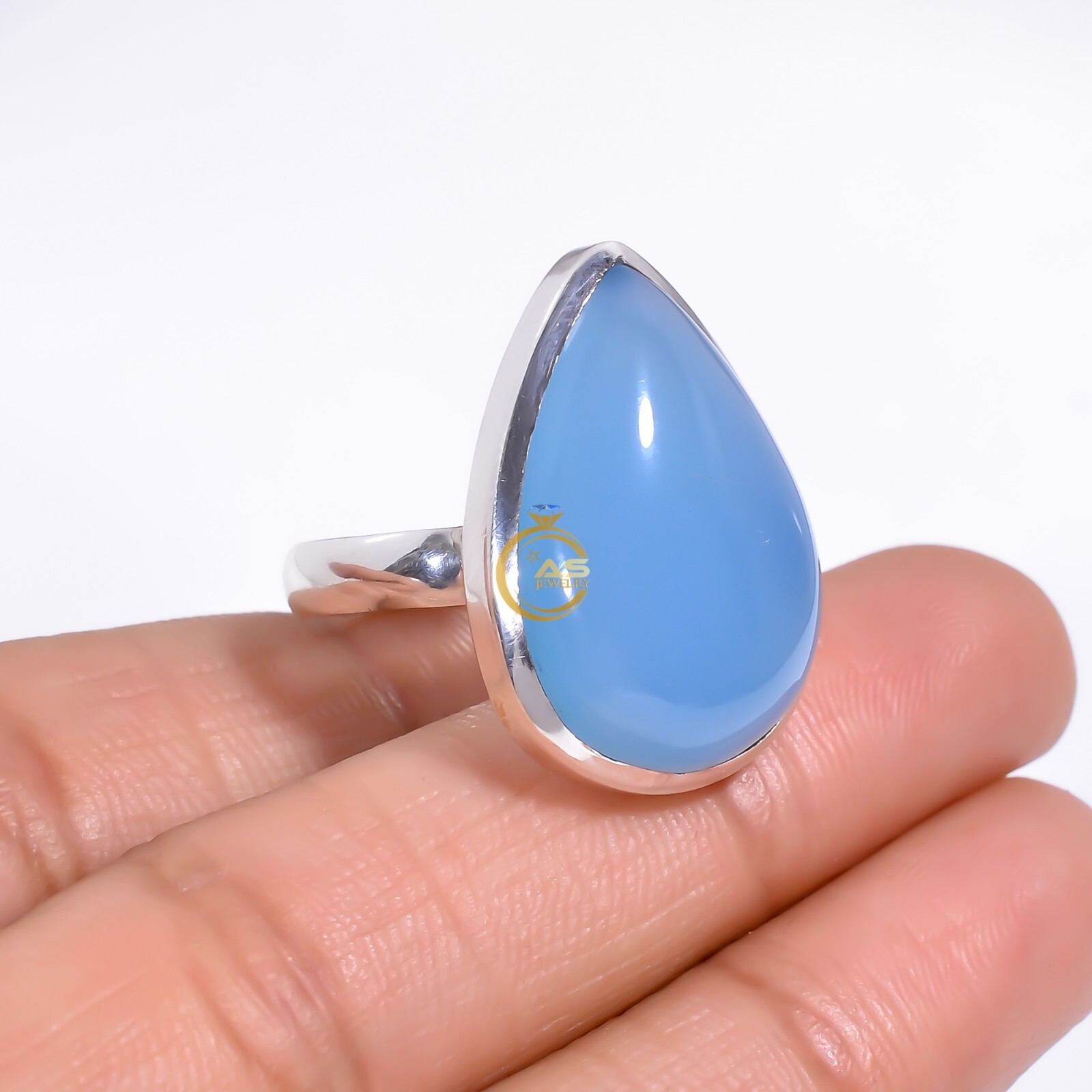 Blue Chalcedony Ring 925 Sterling Silver Statement Rings Jewelry Gift for Her