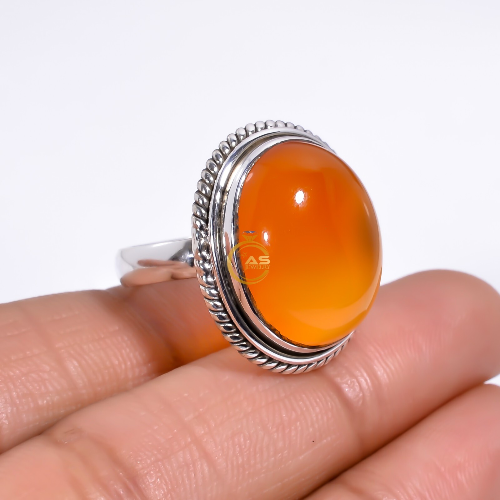 как выглядит Natural Orange Carnelian Stone Ring 925 Sterling Silver Handmade Statement Rings фото