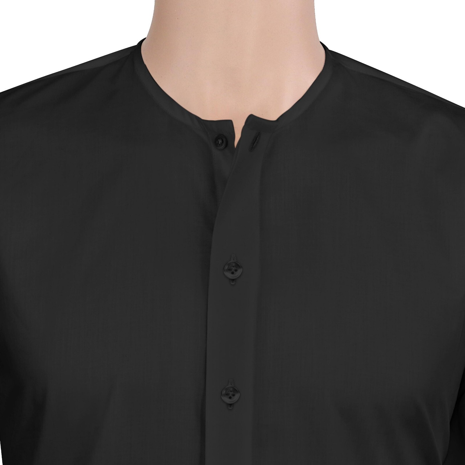 Men's Mandarin Black Collarless Grandad Round Neck Formal Wear 100 Cotton Shirt